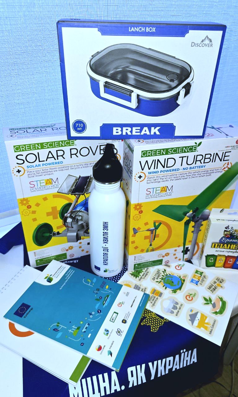 Переможці отримали заслужені Дипломи та цінні екологічні подарунки від партнерів заходу – Асоціації «Енергоефективні міста України» та проєкту Угоди Мерів щодо Клімату та Енергії. Серед подарунків були сучасні зарядні пристрої, конструктори, що демонструють роботу вітряка та автомобіля від сонячної панелі, багаторазові пляшки для води, екологічні ланч-бокси та зручні еко-торби. Ці подарунки покликані заохотити дітей до подальшого вивчення та впровадження екологічних рішень у повсякденне життя.
