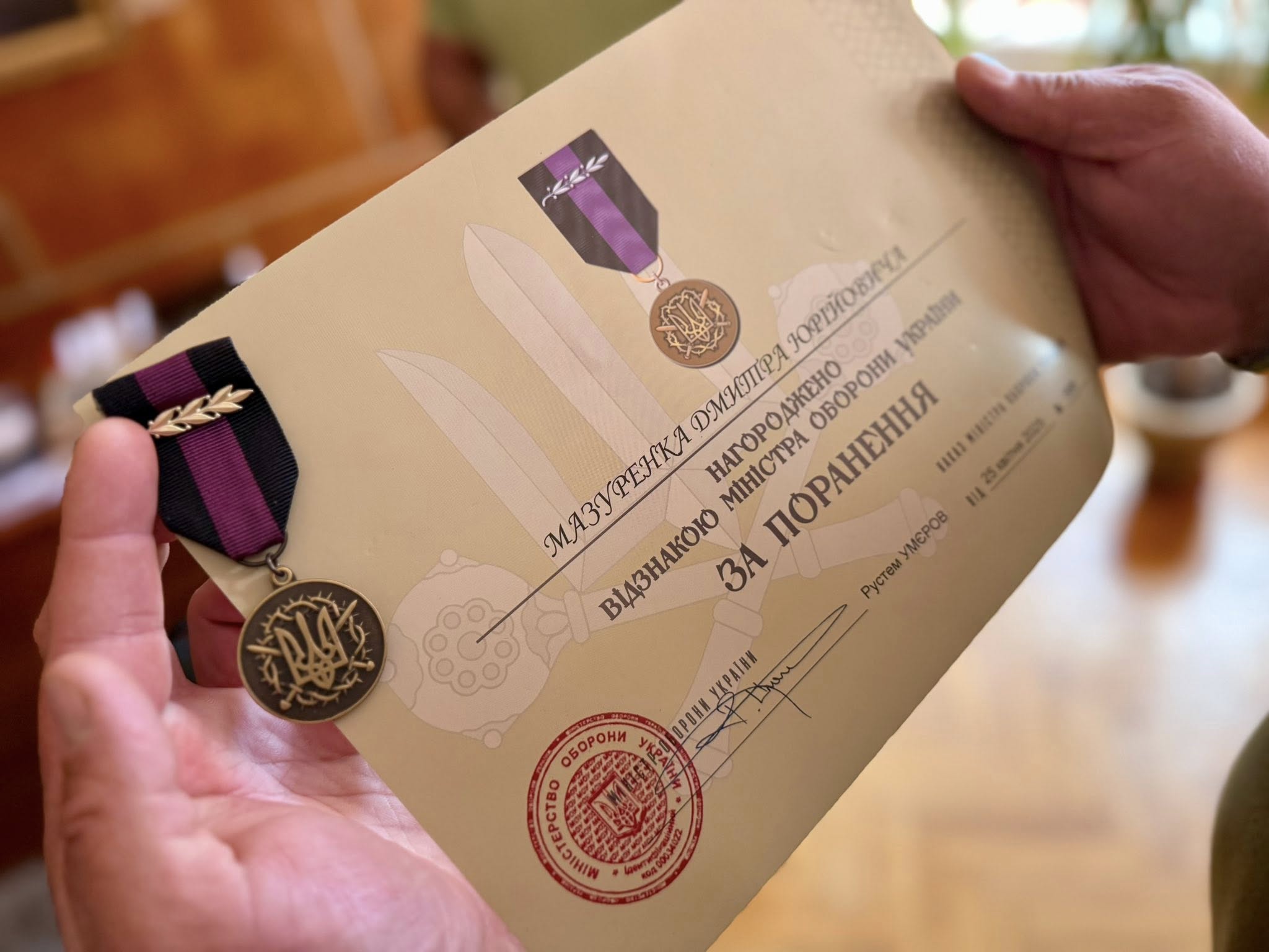Нагорода “За поранення” є символом глибокого болю, незламної мужності та великої самопожертви. Вона нагадує кожному з нас, що свобода має високу ціну. Цю ціну оплачують здоров’ям та життям кращі сини й дочки України. Дмитро Юрійович Мазуренко проявив надзвичайну хоробрість, захищаючи нашу землю.