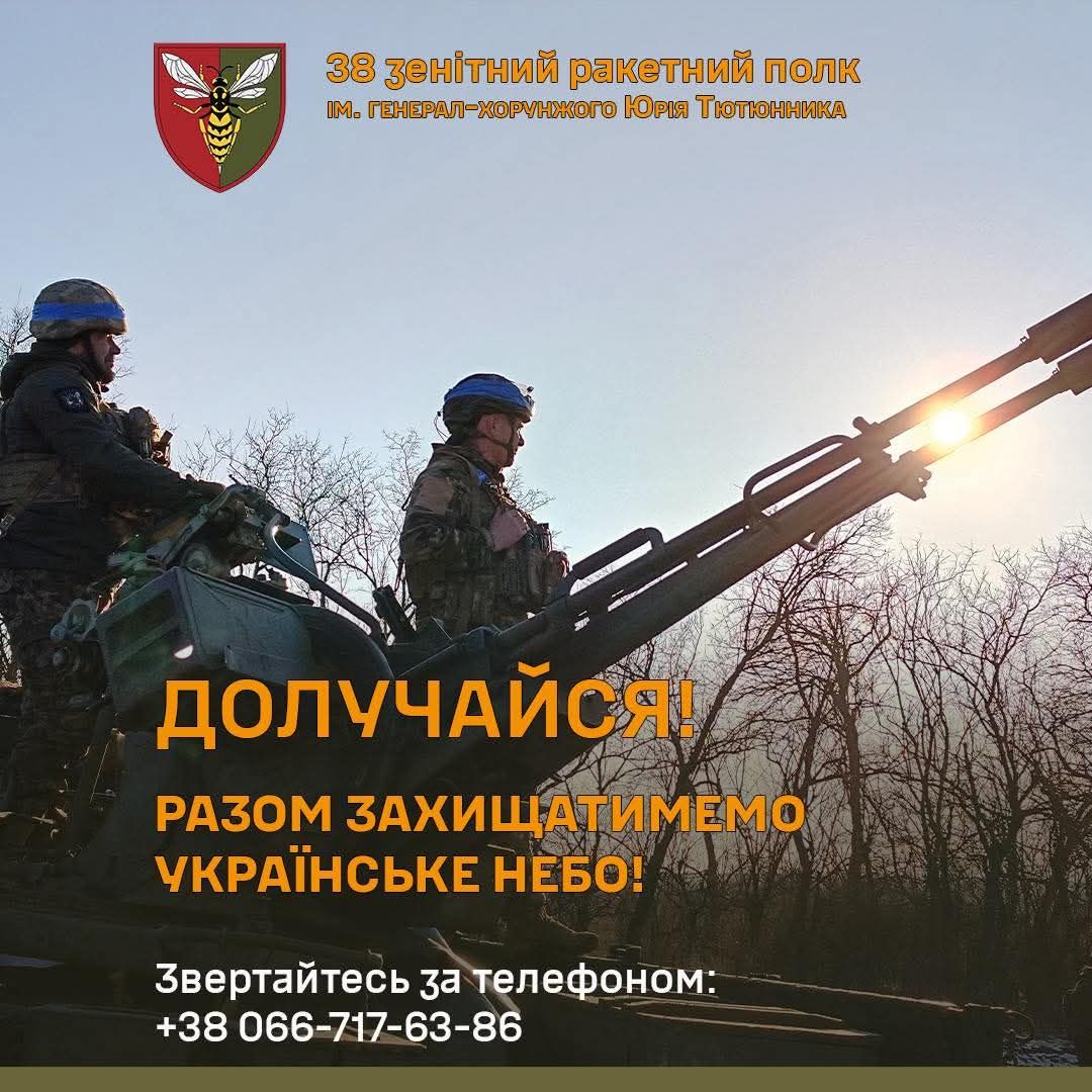 Пам’ятайте, що війна не закінчиться без вашої участі. Кожен, хто готовий стати на захист Батьківщини, відіграє неоціненну роль. Якщо ви шукаєте можливість служити Україні, приєднатися до досвідчених фахівців та отримати цінний бойовий досвід, 38-й зенітний ракетний полк – це ваш вибір. Ми гарантуємо професійний розвиток, гідні умови служби та можливість бути частиною потужного механізму захисту.