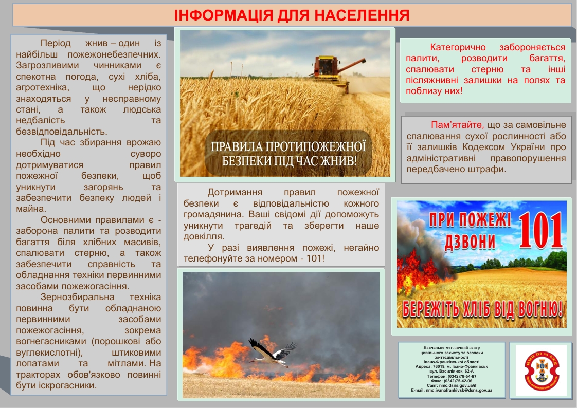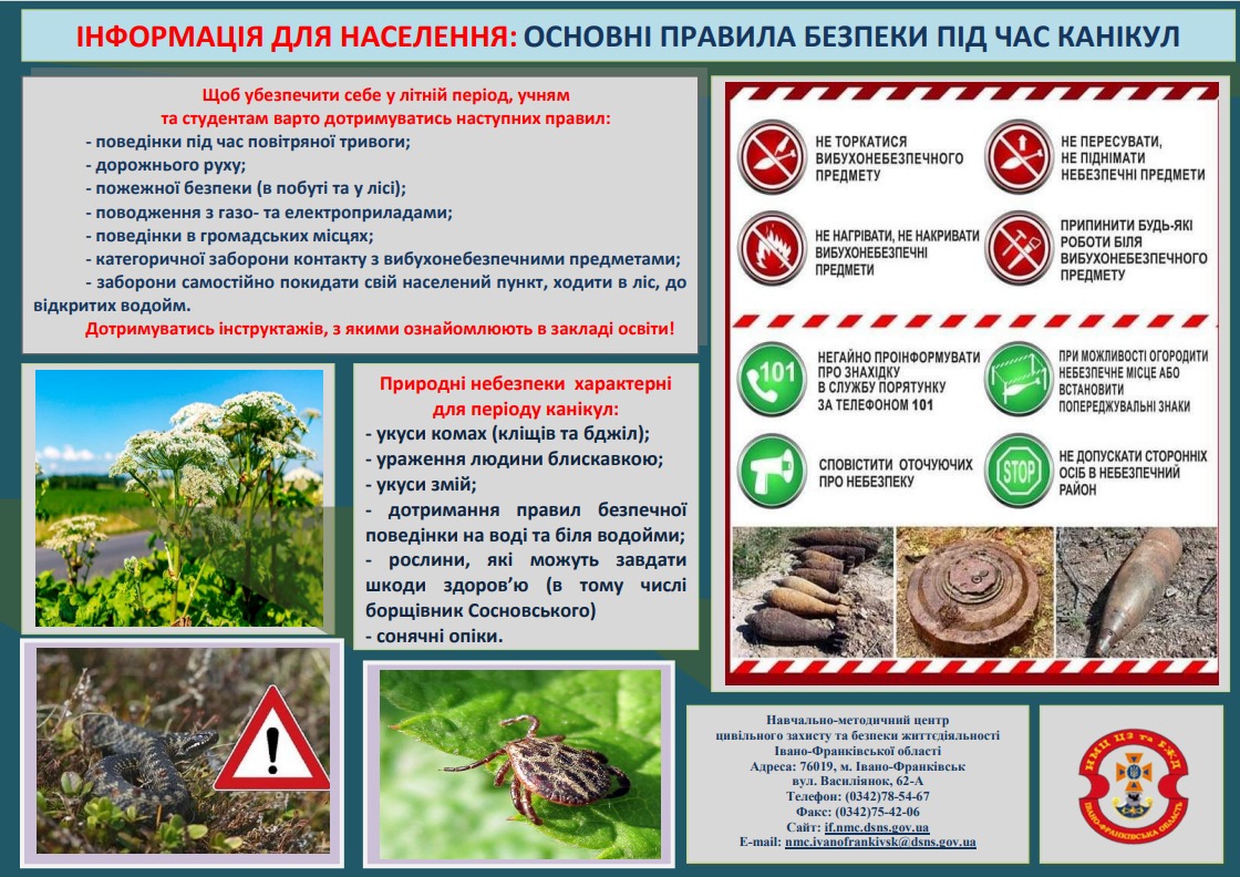 Навчально-методичний центр цивільного захисту та безпеки життєдіяльності Івано-Франківської області з метою попередження виникнення надзвичайних ситуацій надсилає інформаційно-просвітницькі матеріали з питань цивільного захисту та пожежної безпеки