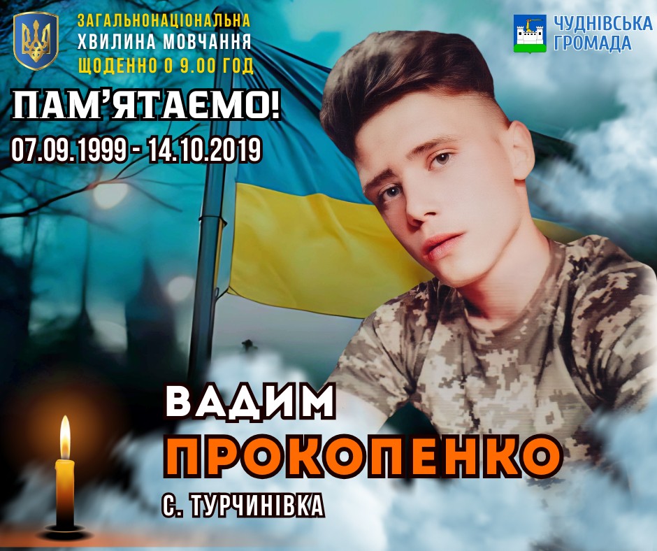 Сьогодні минає вже шоста річниця від дня трагічної загибелі Героя України, Захисника нашої Батьківщини Вадима ПРОКОПЕНКА. Вадим, житель славетного села Турчинівка, мужньо став на захист своєї землі і поклав за неї своє молоде життя. Ця річниця – день гіркої розлуки, нескінченного жалю та світлої, нетлінної пам’яті про його подвиг.