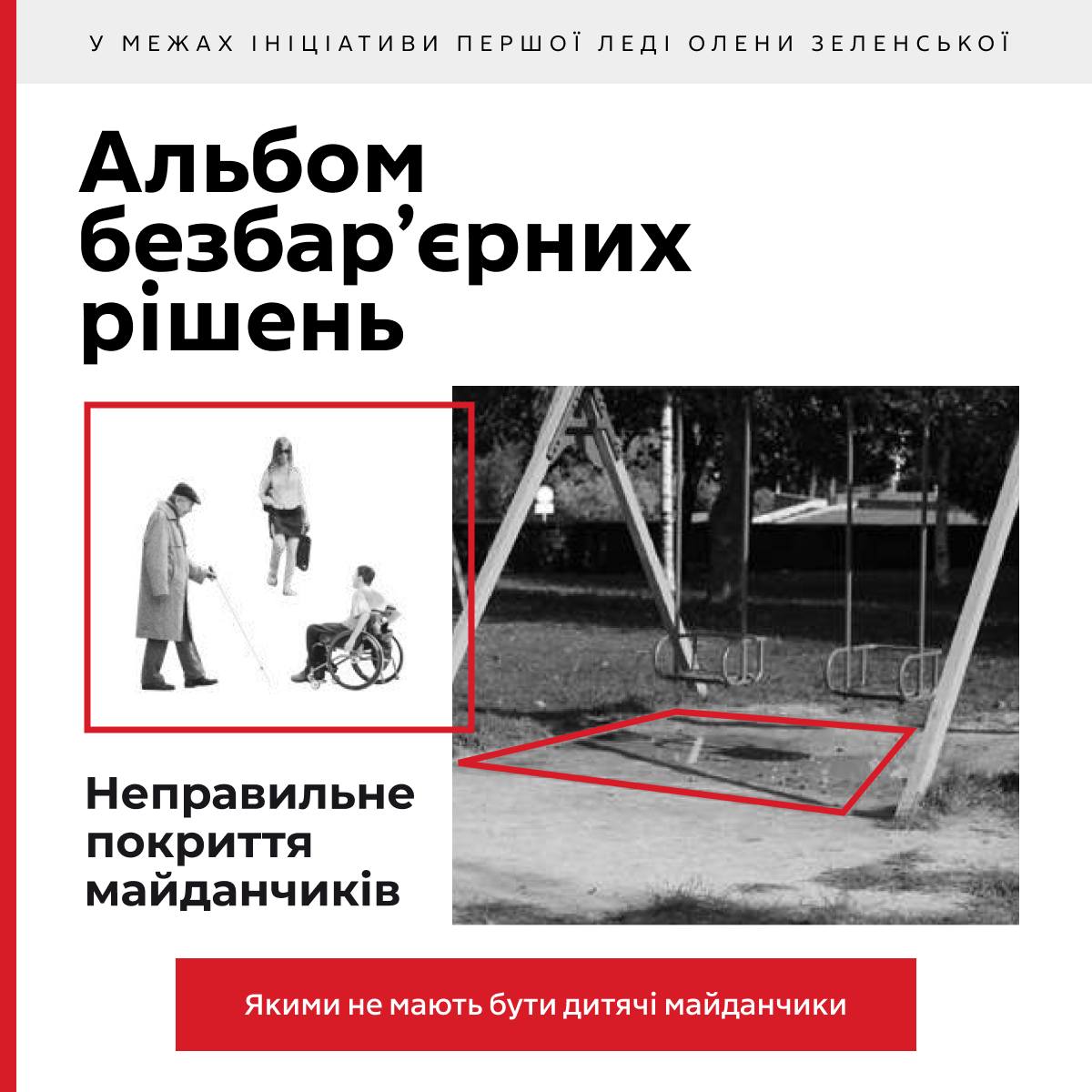 Ці приклади – це не просто вказівка на проблеми, а поради, як покращити простір. Більше інформації можна знайти в Альбомі безбар’єрних рішень, створеному в рамках ініціативи першої леді Олени Зеленської «Без бар’єрів». Проєкт реалізовано ГО «Безбар’єрність» спільно з Міністерством розвитку громад та територій України у межах проєкту «Інтегрований розвиток міст в Україні ІІ», що виконується німецькою урядовою компанією Deutsche Gesellschaft für Internationale Zusammenarbeit (GIZ) GmbH за фінансової підтримки урядів Німеччини та Швейцарії. Розробником Альбому є урбан-бюро Big City Lab.