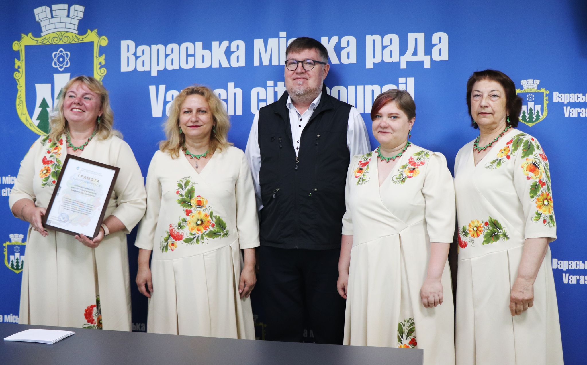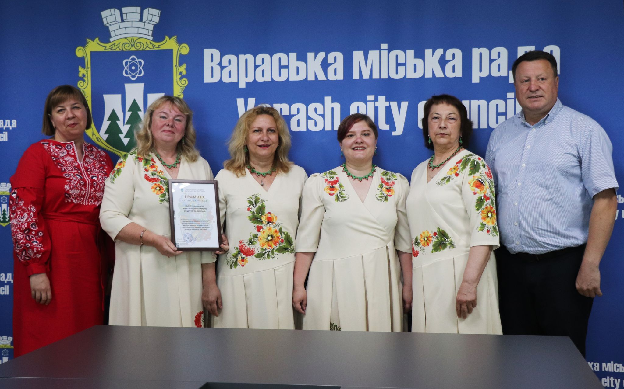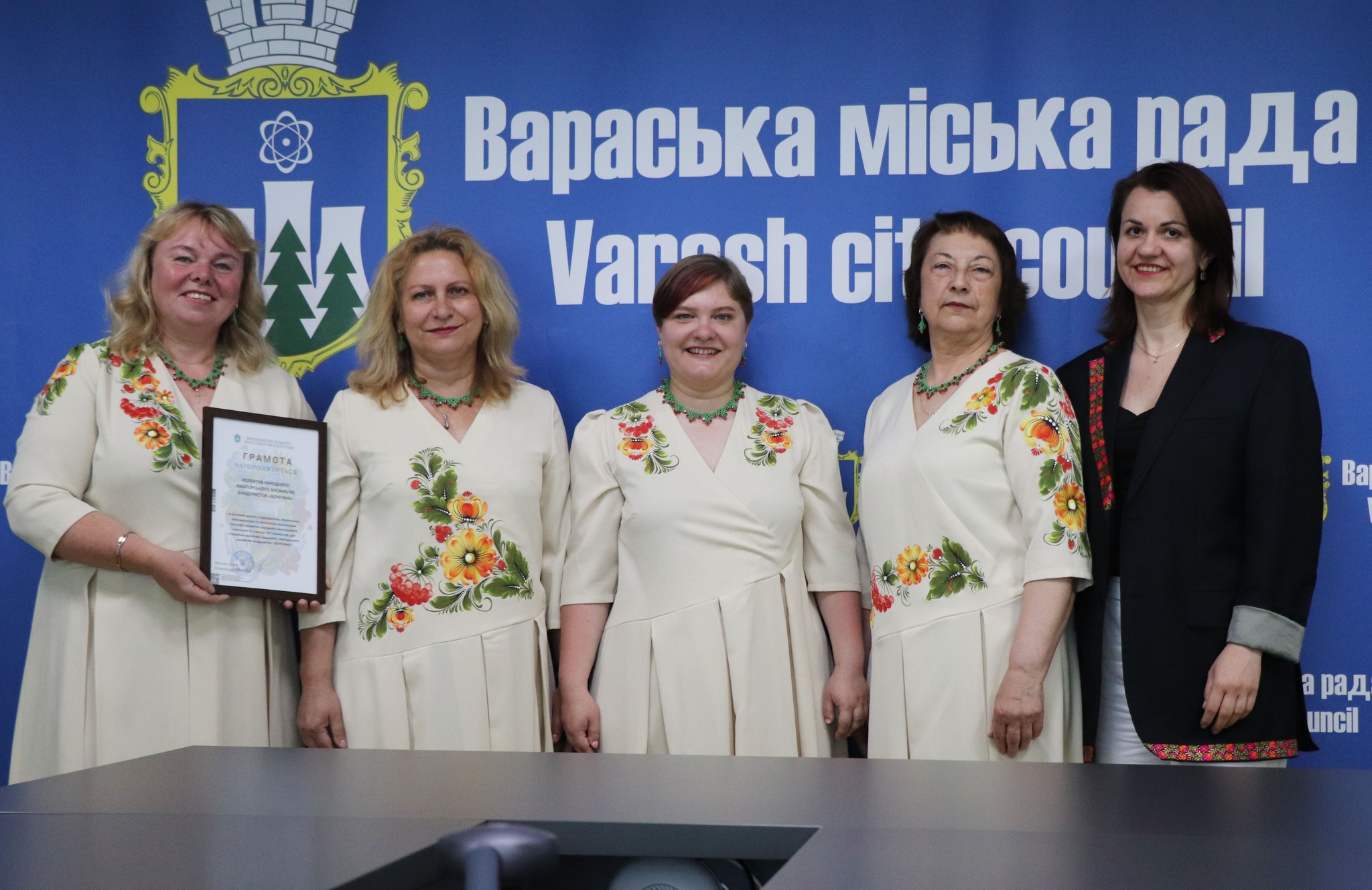 Грамотою виконавчого комітету Вараської міської ради та грошовою винагородою за вагомий внесок у відродження, збереження, популяризацію та збагачення національної культури, розвиток народного аматорського мистецтва та з нагоди 20-ї річниці від дня створення колективу народного аматорського ансамблю бандуристок “Берегиня” було нагороджено:
