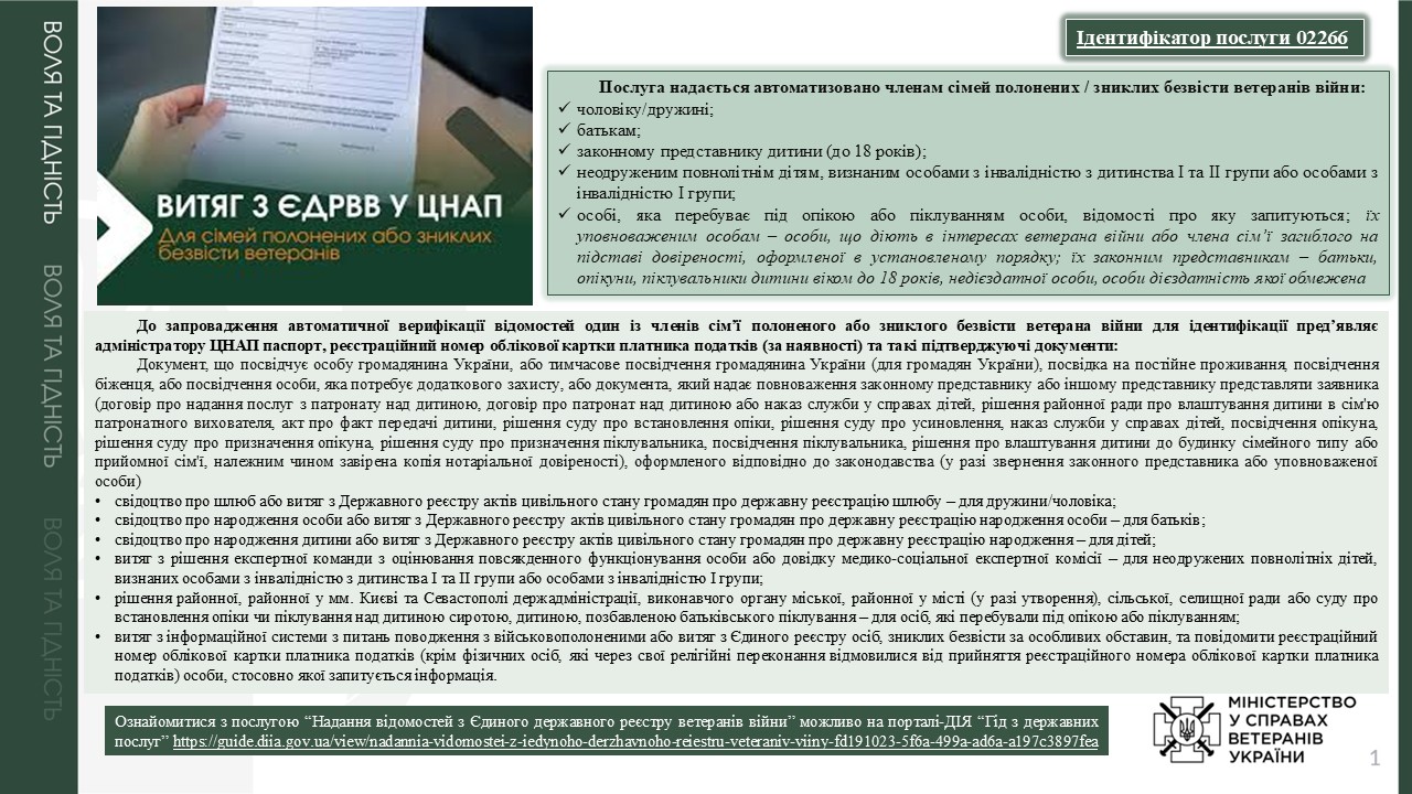 Більше інформації про отримання відомостей з ЄДРВВ можна отримати на офіційному сайті Міністерства у справах ветеранів України https://mva.gov.ua/