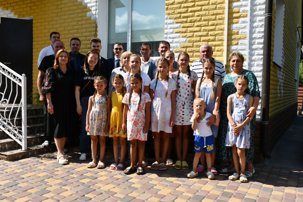 Делегація також мала честь завітати до дитячого будинку сімейного типу родини Яців, який успішно функціонує з 2016 року в Олександрівці. За роки своєї роботи, цей заклад надав прихисток 17 дітям-сиротам та дітям, позбавленим батьківського піклування. На даний момент, у цій турботливій родині виховується 10 дітей, які оточені любов’ю та турботою.