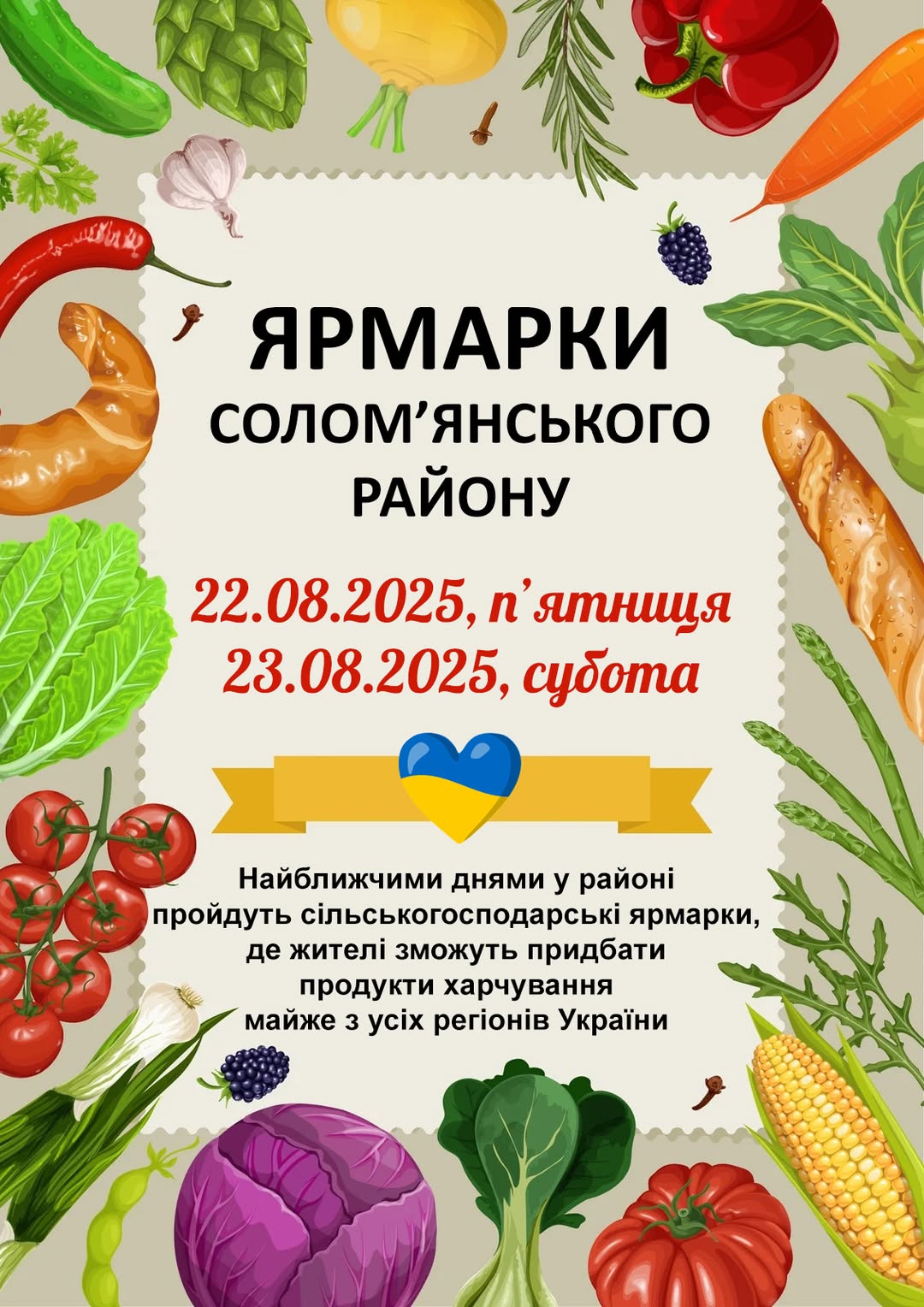 Ярмарки в Солом’янському районі: свіжі продукти 22-23 серпня