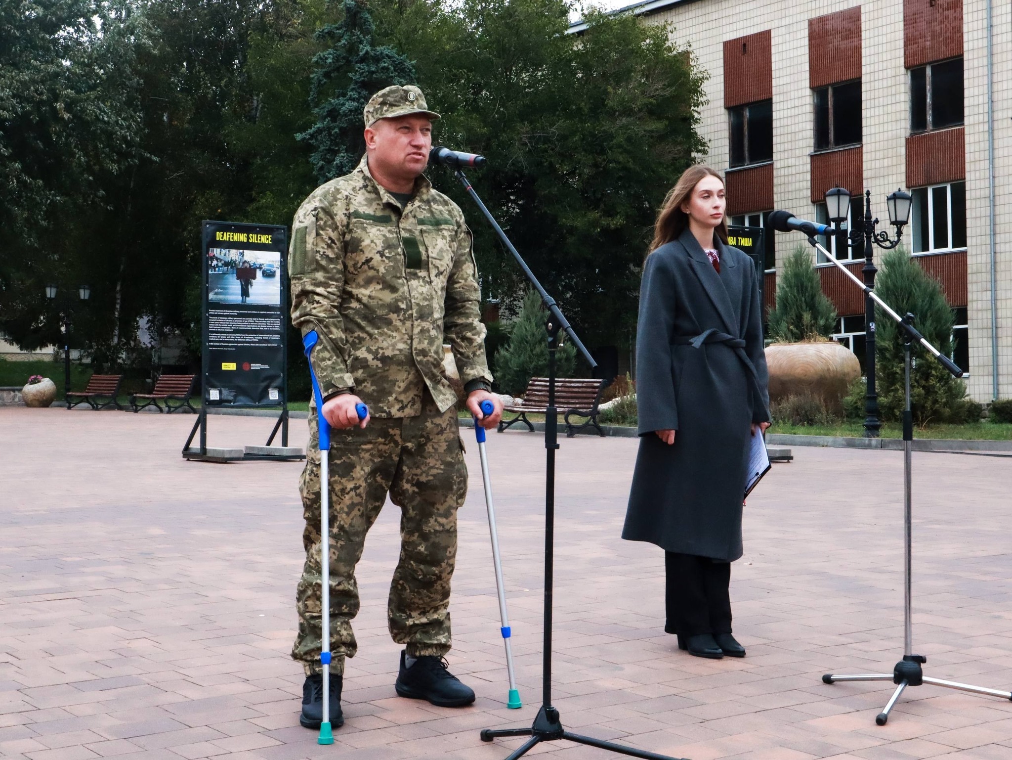 Завершився захід відкриттям надзвичайно потужної фотовиставки «Оглушлива тиша». Ці світлини, сильніші за будь-які слова, розповідають про втрати, про незламну мужність українських захисників та про ту високу ціну, яку доводиться платити за свободу й незалежність нашої держави. Вони служать вічним нагадуванням про ціну миру.