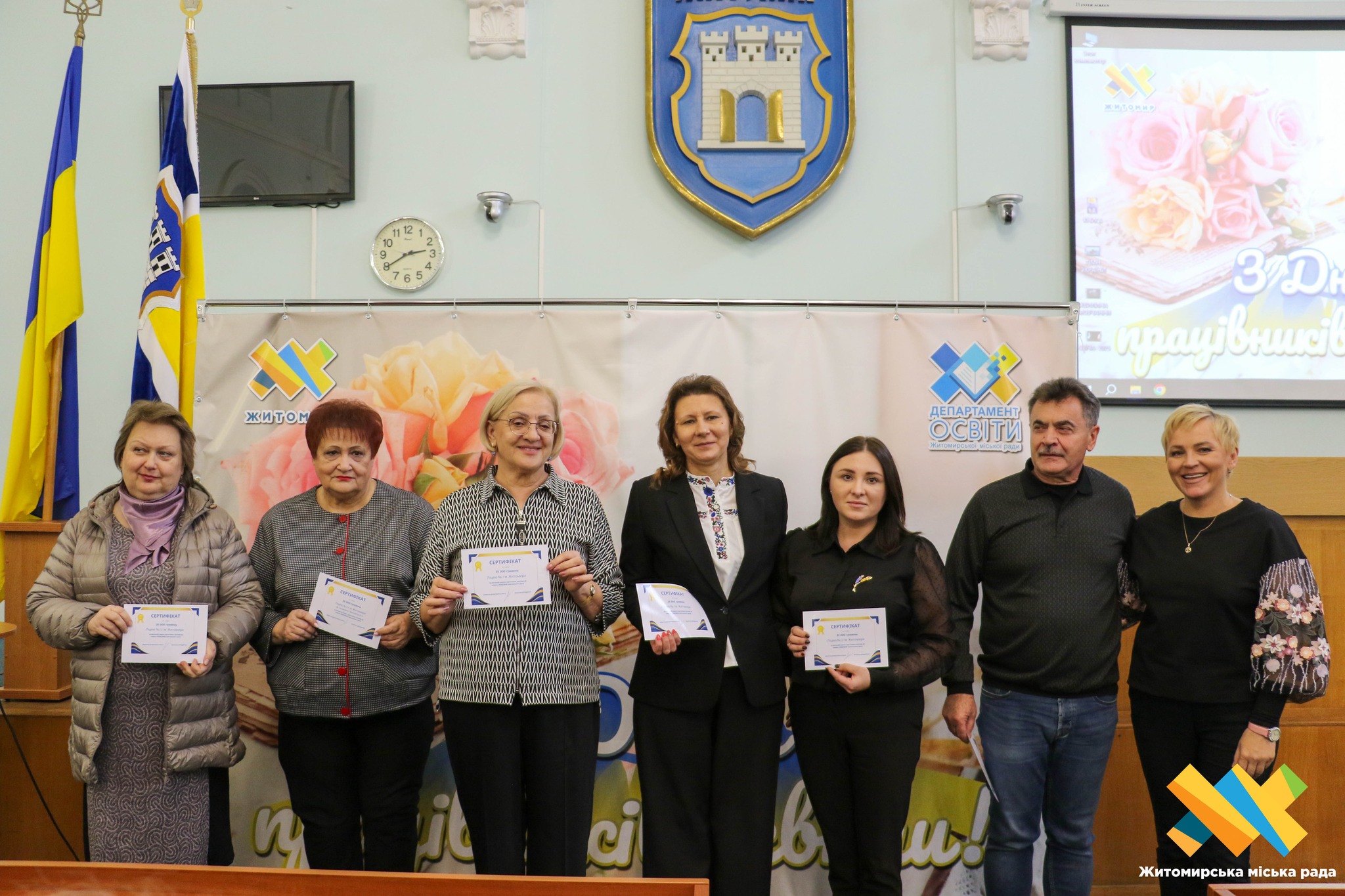 Сьогодні, у цей особливий день, кращих педагогів Житомирської громади було відзначено почесними грамотами міського голови, подяками, цінними нагородами та грошовими преміями. Секретар міської ради Галина Шиманська, звертаючись до присутніх, підкреслила: «Уже понад три з половиною роки ви мужньо тримаєте освітянський фронт і свою лінію оборони. Кожен заклад освіти – це надійна фортеця, де наші діти перебувають у безпечному середовищі. Ми щиро дякуємо вам за вашу єдність, патріотизм та натхненну працю. Переконана, що успіхи 2025–2026 навчального року значно перевищать досягнення минулих років».