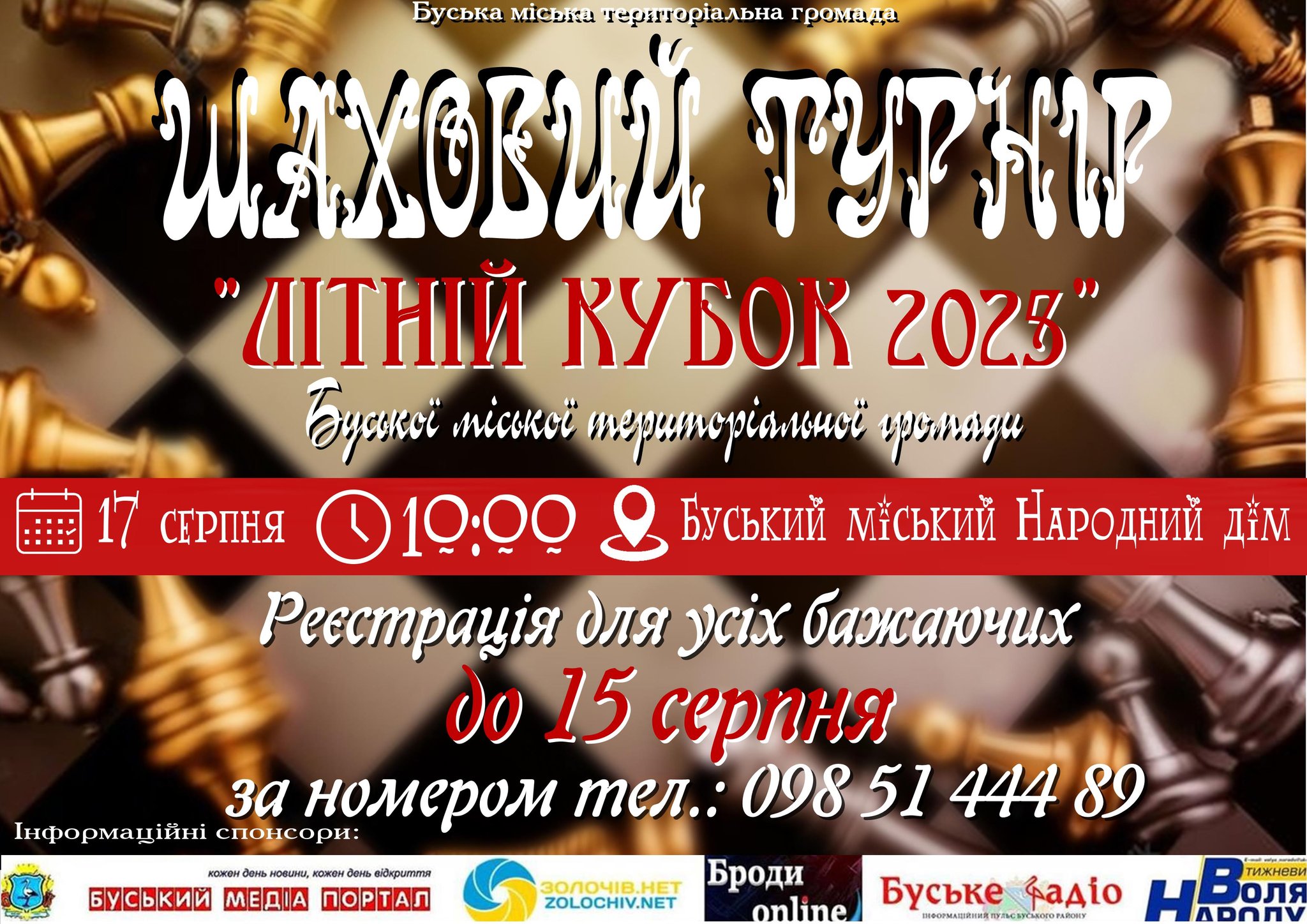 ♟ Напередодні Міжнародного дня шахів, який відзначають 20 серпня, Буська міська територіальна громада запрошує любителів інтелектуальних баталій на шаховий турнір «Літній кубок 2025». Це чудова нагода продемонструвати свою майстерність, випробувати стратегії та позмагатися за перемогу у дружній атмосфері.
