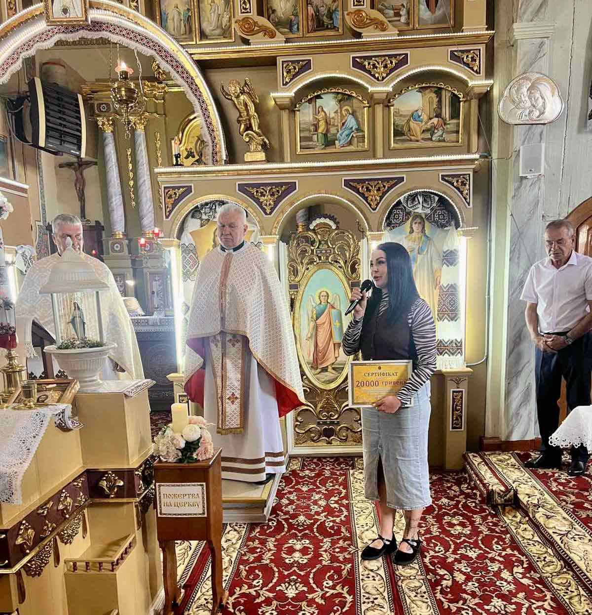 Під час заходу заступниця начальниці управління культури, національностей та релігій Ольга Кайдан звернулася до присутніх та вручила настоятелеві храму, отцеві Андрієві Челядину, важливий подарунок. Це грошовий сертифікат на суму 20 тис. грн, який стане підтримкою для подальшого функціонування та розвитку святині. Ця церква є не просто місцем для богослужінь, а й важливою духовною та культурною пам’яткою нашої громади, яка потребує постійної уваги та підтримки.