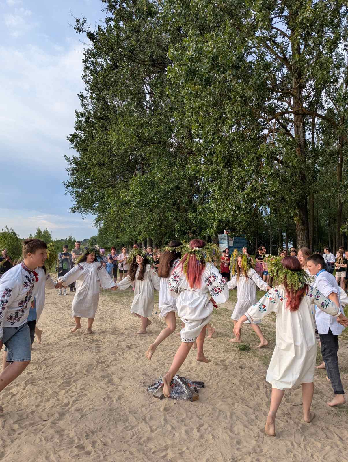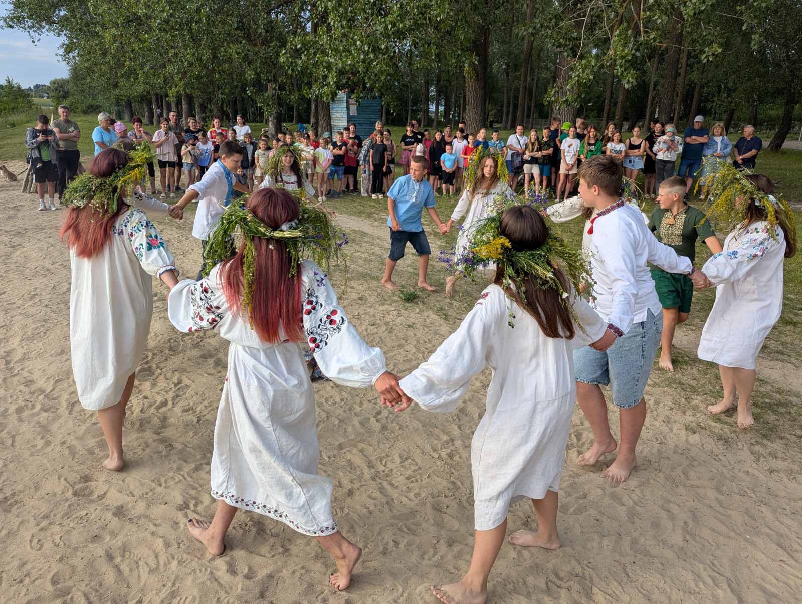 Кумедний водяник, грайливі русалки, колоритна ворожка, веселі дівчата і хлоп’ята – театралізоване дійство було направду захопливим. Овіяний загадковістю обряд – пошук цвіту папороті також знайшов своє втілення у сценарії, і віднайдена квітка наразі для українців може символізувати одне – мрію про Перемогу України. Нехай вона настане якнайшвидше!