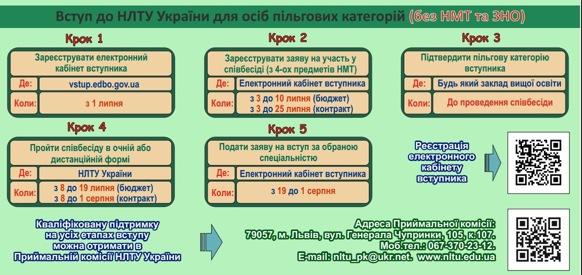 Для отримання детальної інформації та з питань вступу, звертайтесь до приймальної комісії НЛТУ за телефоном: 067 370 23 12. Не втрачайте можливість отримати якісну освіту та відкрити для себе нові перспективи!