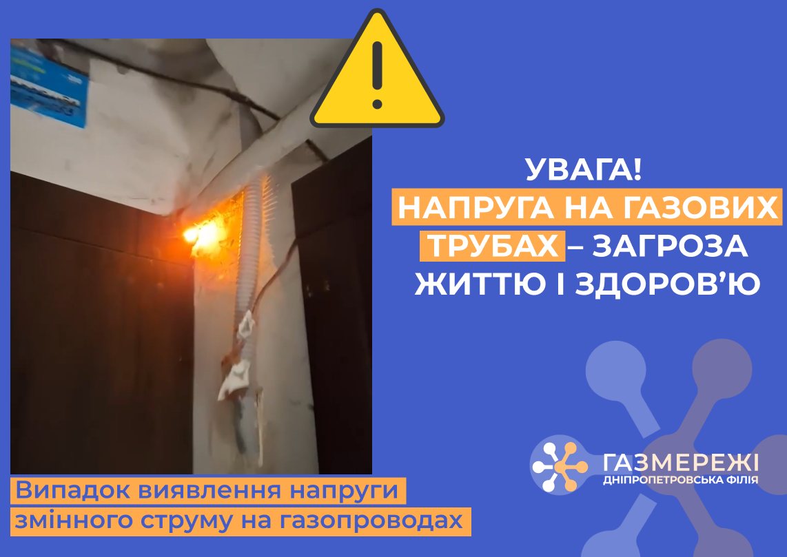 Дніпропетровська філія «Газмережі» звертає увагу споживачів на серйозну проблему – останнім часом почастішали випадки виявлення напруги змінного струму на газопроводах у багатоквартирних будинках. А це надзвичайно небезпечно!