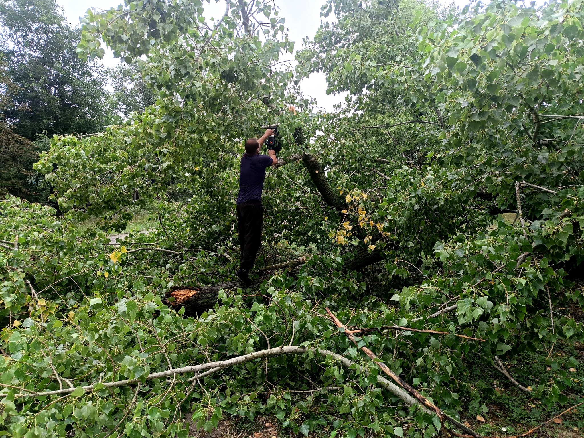 Внаслідок сильного вітру відбулося падіння дерев та гілок. Частково відсутнє електропостачання.