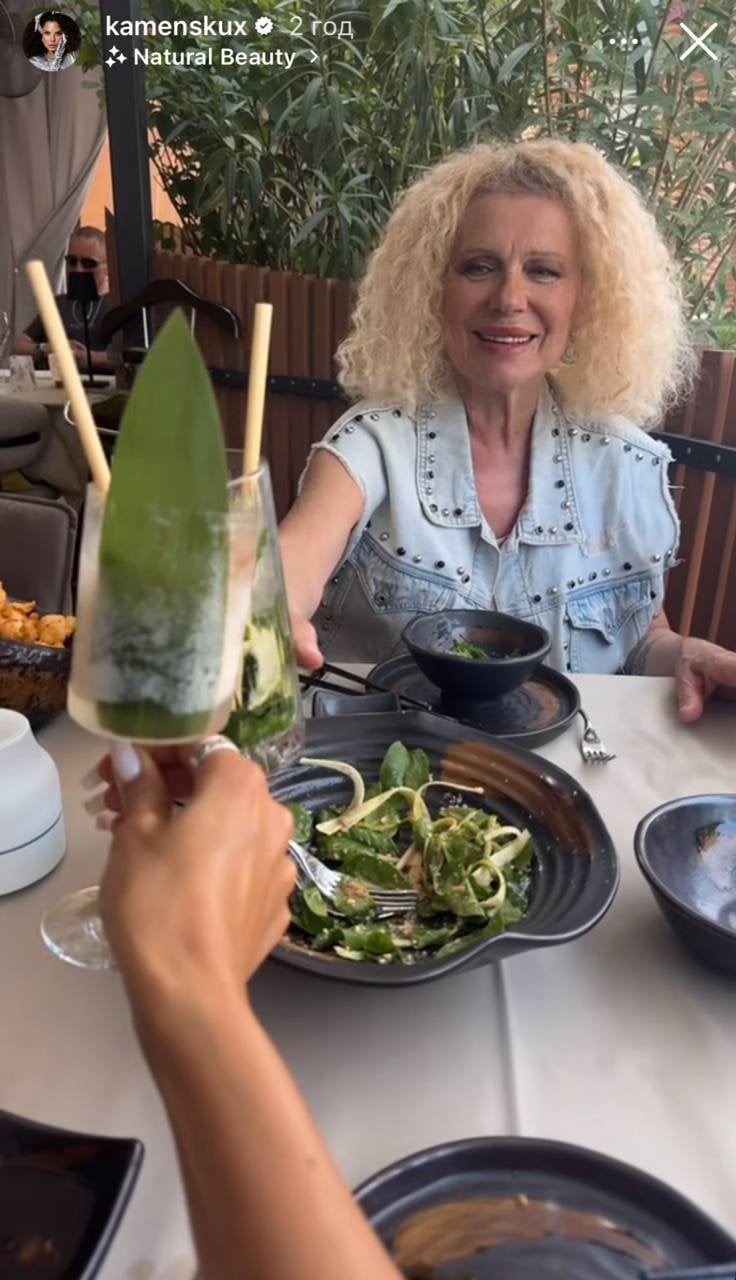 У своєму фотоблогу Настя Каменських оприлюднила зворушливі кадри разом зі своєю мамою Лідією. На світлині усміхнена Лідія позує у стильному джинсовому жилеті за столом. У руках обох жінок видно келихи, підняті за цю теплу і довгоочікувану зустріч.