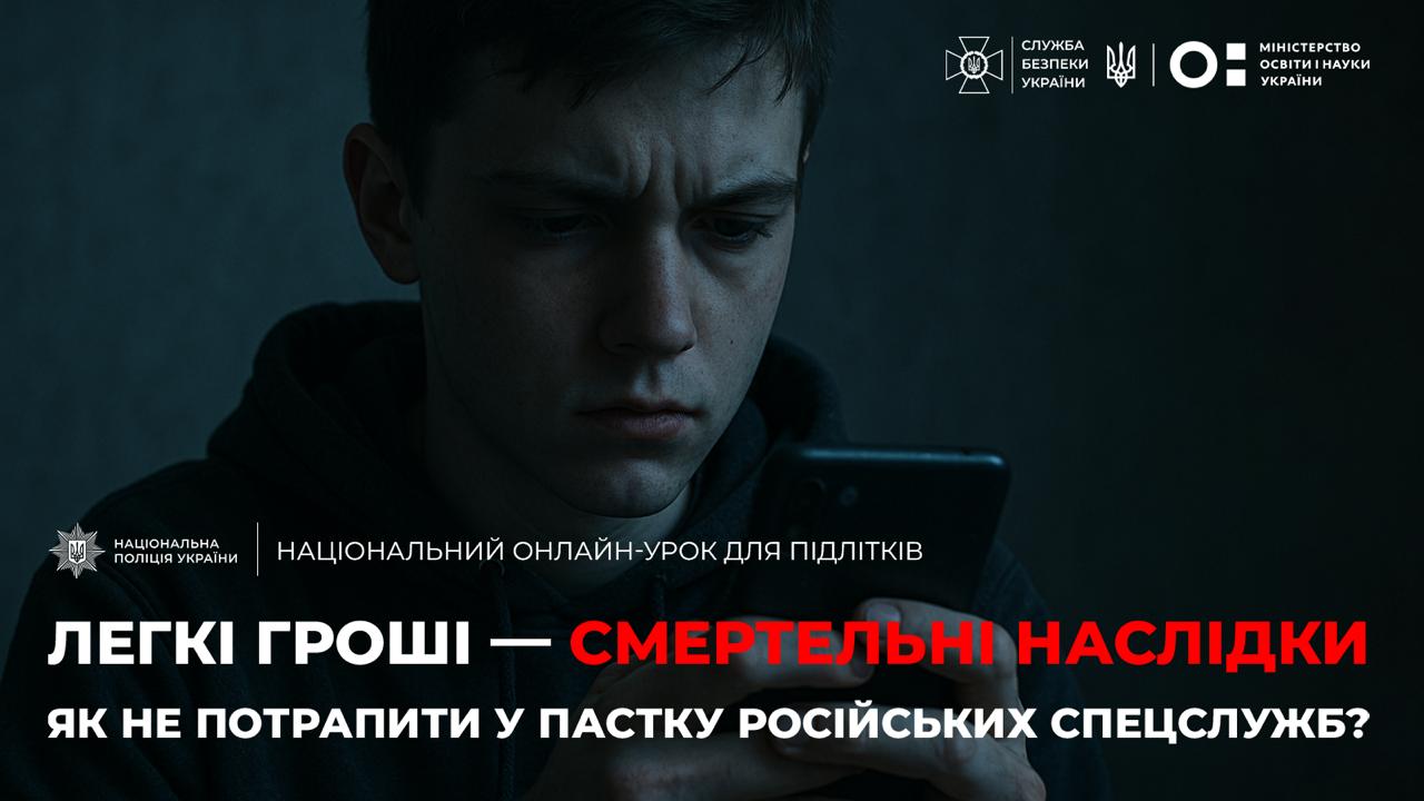 Національна поліція України (НПУ) та Служба безпеки України (СБУ) у співпраці з Міністерством освіти і науки України (МОН) організували загальнонаціональний онлайн-урок для українських школярів. Мета уроку – підвищення обізнаності дітей щодо методів вербування, які використовують російські спецслужби. Ця ініціатива є частиною масштабної інформаційної кампанії, спрямованої на протидію втягненню дітей у злочинну діяльність, зокрема, диверсії та терористичні акти.
