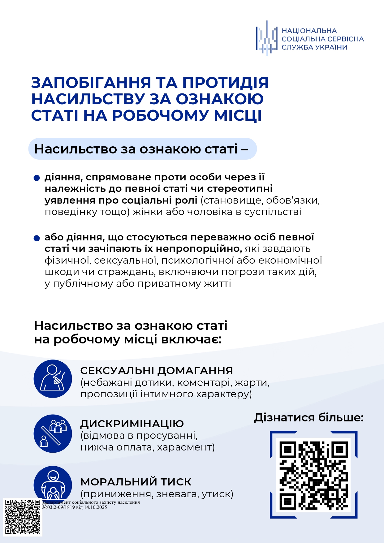 Національна соціальна сервісна служба України виступає з важливим нагадуванням щодо проблеми насильства за ознакою статі. Це дії, спрямовані проти особи виключно через її стать або через стереотипні уявлення про соціальні ролі, що призводять до фізичної, сексуальної, психологічної чи економічної шкоди. Важливо розуміти, що таке насильство може проявлятися у різних формах і торкатися будь-кого, незалежно від віку, статі чи соціального статусу. Воно руйнує життя, залишаючи глибокі рани та наслідки для психіки та фізичного здоров’я.