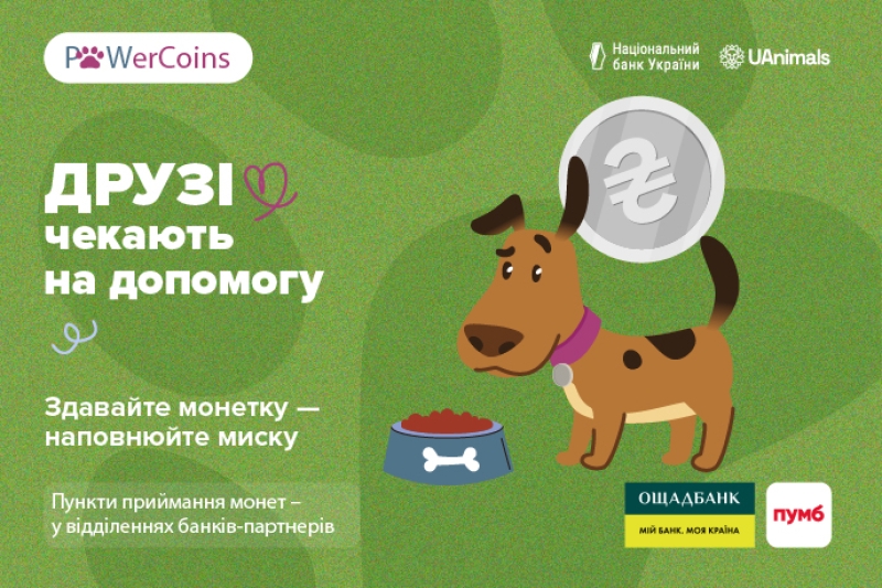 Національний банк України разом із зоозахисною організацією UAnimals, яка присвячує свою діяльність порятунку тварин та довкілля від наслідків війни та людської жорстокості, оголошують про старт благодійної акції #PowerCoins. Ця ініціатива запрошує всіх небайдужих українців долучитися до збору коштів, що будуть спрямовані на допомогу чотирилапим друзям, які постраждали від війни.