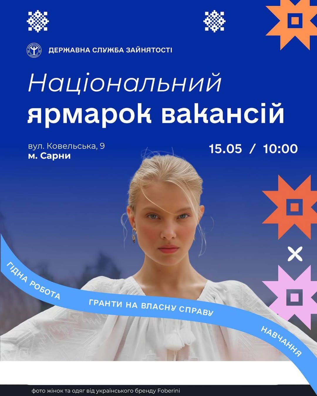 Запрошуємо вас 15 травня з 10:00 до 16:00 на Національний ярмарок вакансій у м. Сарни (вул. Ковельська, 9) 🏢. Це чудова нагода знайти роботу та відкрити для себе нові перспективи!