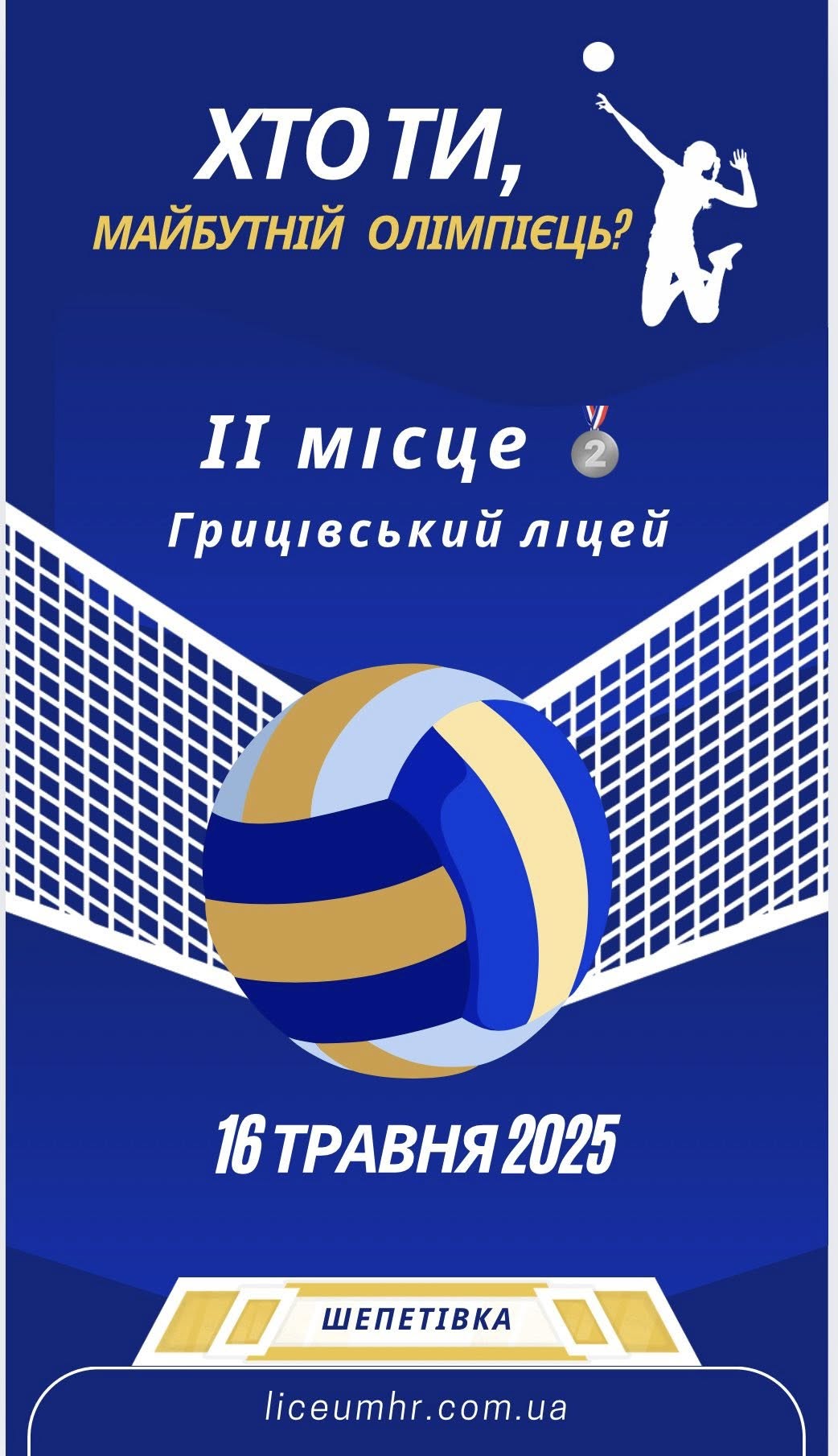 Вітаємо Грицівський ліцей з блискучим виступом команди з волейболу на II етапі літніх спортивних ігор Хмельниччини «Хто ти, майбутній олімпієць?». Наші спортсменки вибороли почесне II місце серед семи сильних команд! Це чудовий результат, який є свідченням їхньої наполегливої праці та відданості спорту. Особлива подяка тренеру Ivan Poltoradin, чия щоденна праця, віра в учнів та високий професіоналізм ведуть команду до перемог. Його відданість справі та вміння знаходити підхід до кожного спортсмена роблять його справжнім наставником та лідером. Грицівський ліцей пишається своїми волейболістками та їхнім тренером!