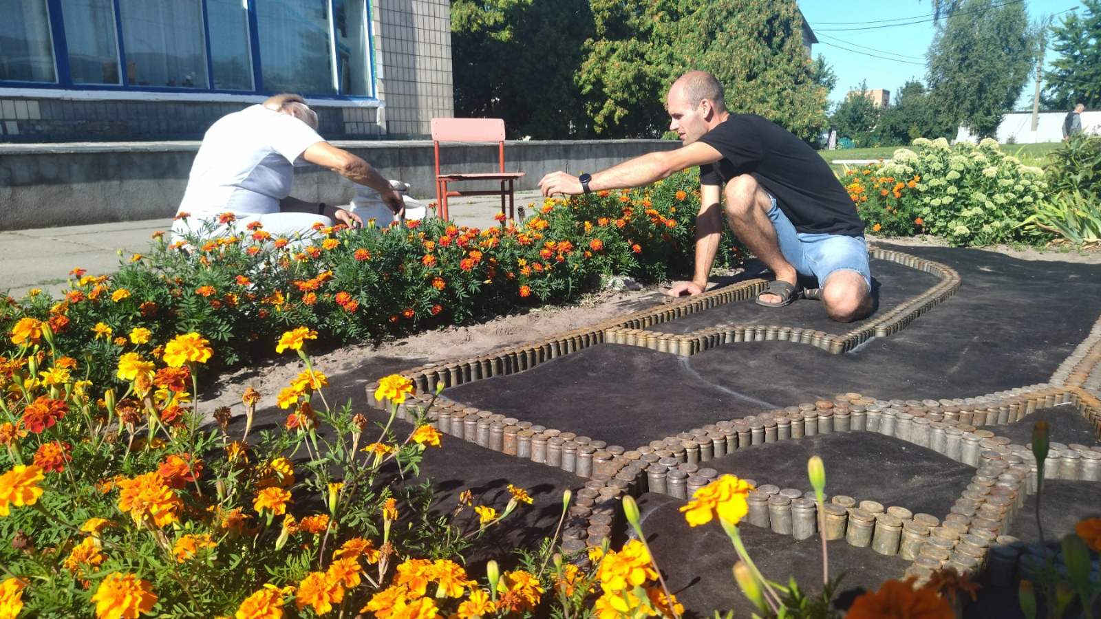 Ініціатором цієї патріотичної ідеї стала Зоя Тимченко, очільниця культури громади. Разом із чоловіком, Віктором Бутком, вони вирушили до прифронтової зони, щоб зібрати гільзи. Ескіз та малюнок композиції створила художниця Марина Панченко, донька Людмили Бащук. Підготовкою гільз до роботи та їхнім укладанням займався Дмитро Петрович разом з Анею Сабадахою. Голова громади, Марія Лях, надала необхідні матеріали, а Лідія Довгорук подбала про вишукане обрамлення з чорнобривців.