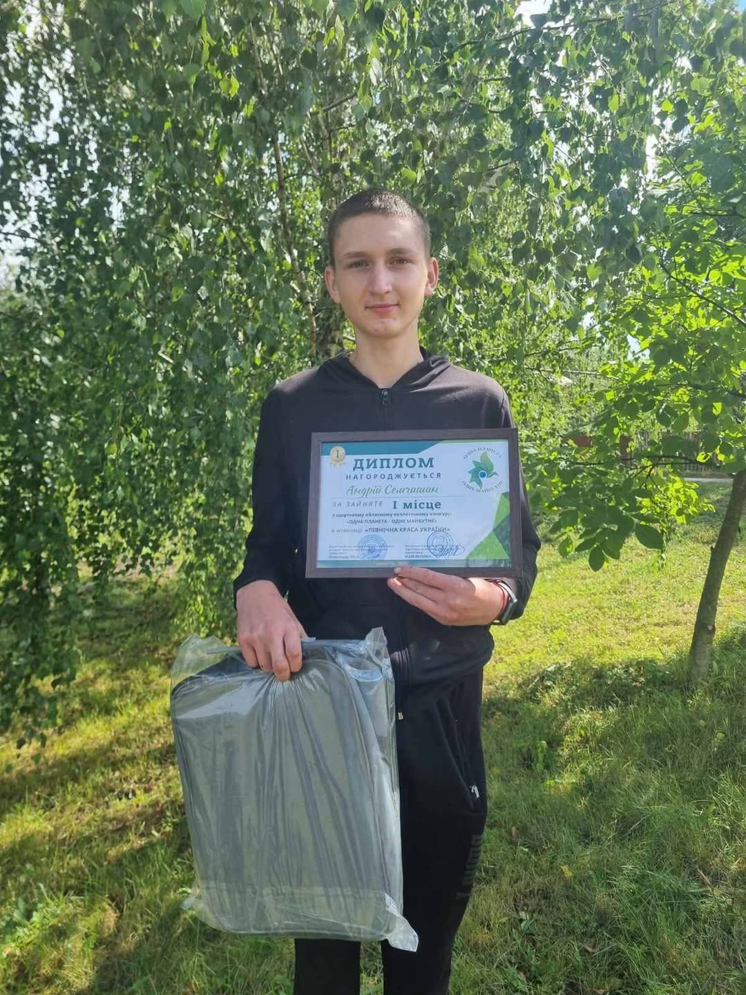 🏆 Щиро вітаємо Андрія Семчишина – талановитого учня Олишівської ЗОШ, який здобув перемогу на обласному екологічному конкурсі «Одна планета – одне майбутнє»! 🌳 Його прагнення зберегти природу та відданість цій меті були гідно оцінені. Андрій посів 🥇 перше місце, отримавши не лише диплом 1 ступеня, але й цінний подарунок від Департаменту екології та природних ресурсів Чернігівської ОДА. 🎁🌿 Це чудове досягнення демонструє, наскільки важливою є турбота про нашу планету для кожного з нас. 🌍❤️