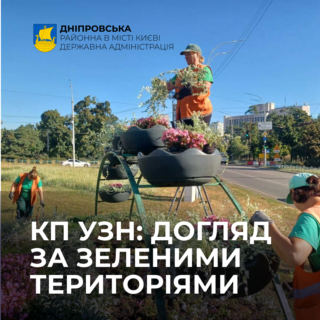 Попри всі виклики сьогодення, команда Комунального підприємства по Управлінню зеленими насадженнями (КП УЗН) Дніпровського району робить усе можливе, щоб у кожному парку, сквері та на вулицях району панувала гармонія з природою. Вони створюють та підтримують зелені оази, що є легенями нашого міста і місцем для відпочинку та відновлення сил. Догляд за рослинами – це важлива місія, яка робить наше життя кращим.