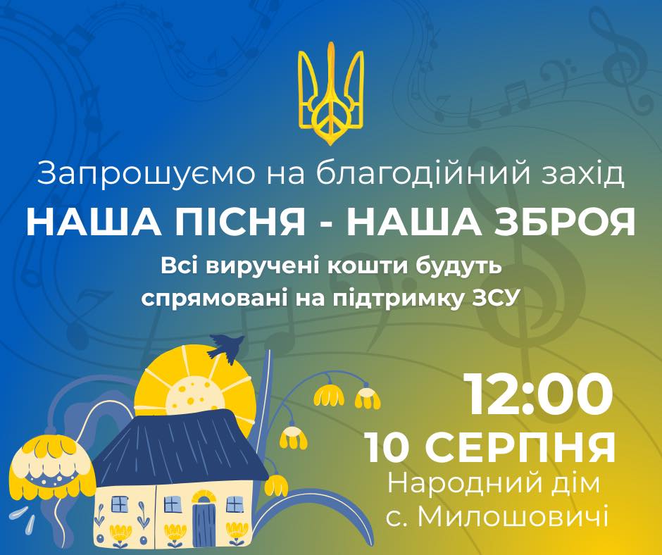 Вже цієї неділі запрошуємо на благодійний захід у Народний Дім с.Милошевичі 🎶