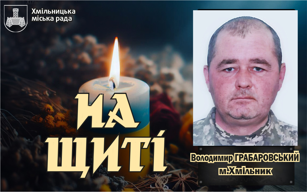 З глибоким сумом сповіщаємо, що завтра, 25 липня 2025 року, місто Хмільник зустрічатиме свого Героя, який повертається «НА ЩИТІ». Це **ГРАБАРОВСЬКИЙ Володимир Олександрович**, 28.01.1983 року народження, солдат, який віддав своє життя 20 липня 2025 року, виконуючи свій військовий обов’язок.