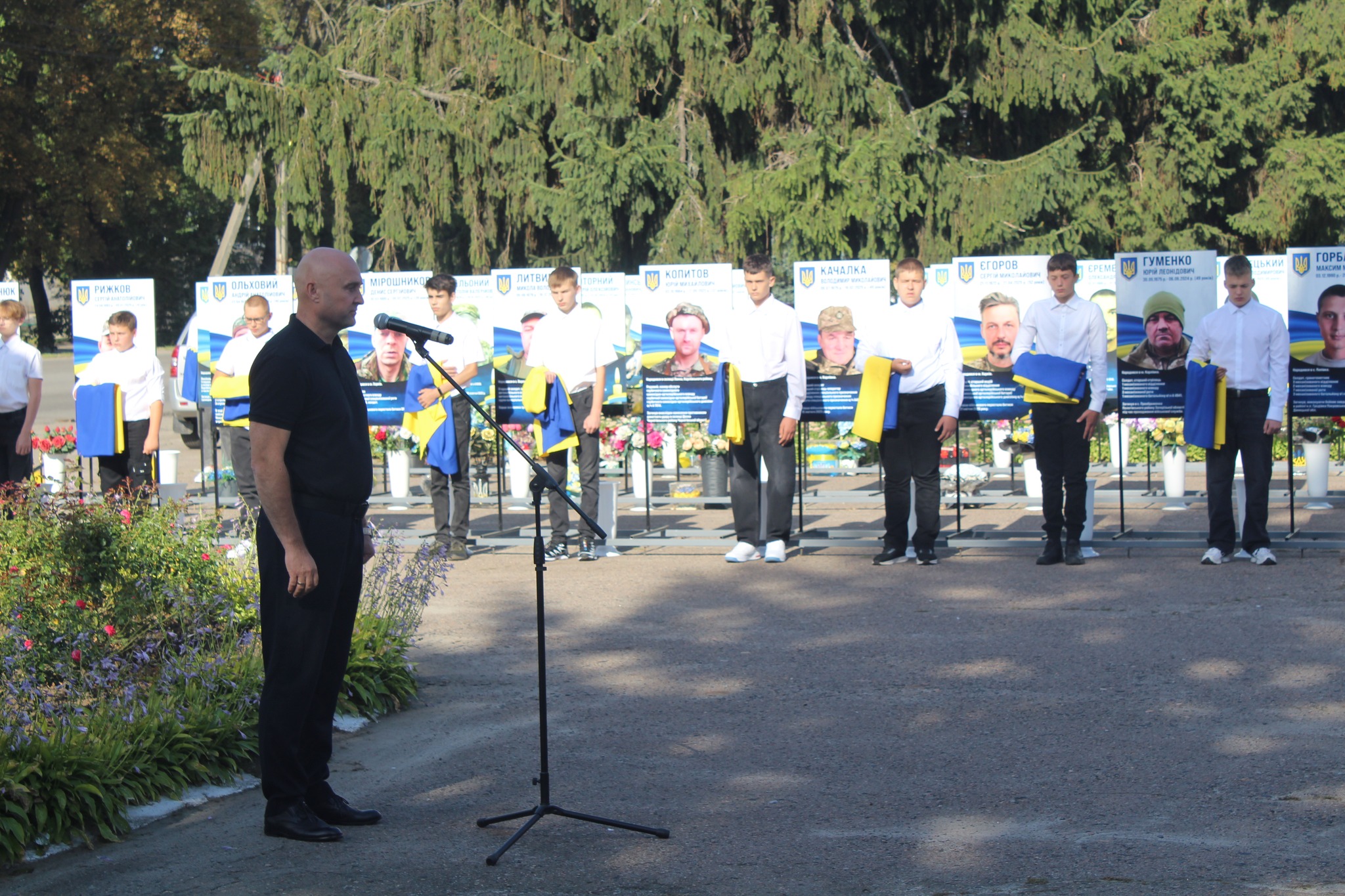 На Алеї Слави у Карлівці з’явилося 13 нових банерів, присвячених нашим землякам-захисникам, які героїчно віддали своє життя за незалежність та свободу України. Ця урочиста подія зібрала разом громаду, яка вшанувала пам’ять полеглих Героїв хвилиною мовчання та поклала квіти до їхніх світлин. Серед присутніх були родини загиблих захисників, представники влади, духовенства та громадськості, об’єднані спільною шаною та вдячністю тим, хто наближав мир та перемогу ціною власного життя.