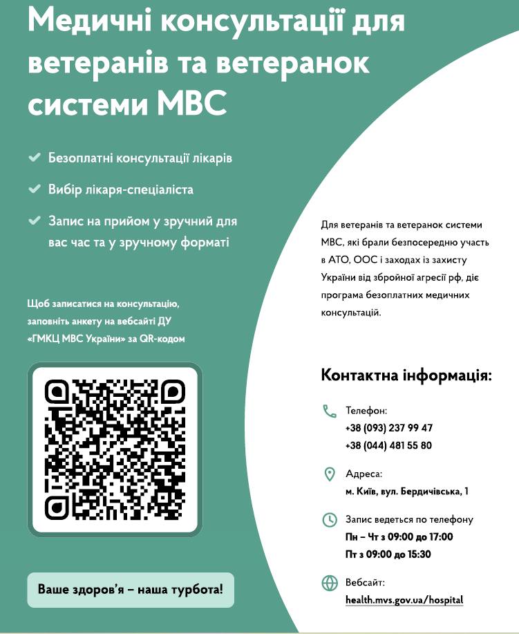 Безкоштовні мед. консультації для ветеранів МВС у Києві