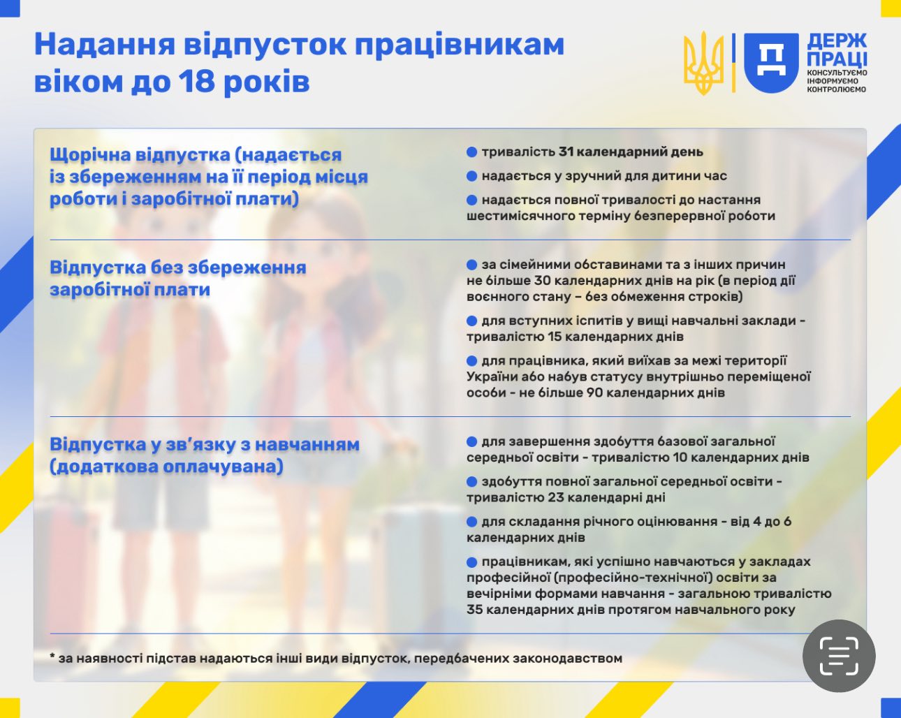 - Умови праці: Праця неповнолітніх має бути легкою, безпечною та не завдавати шкоди здоров’ю чи навчанню.