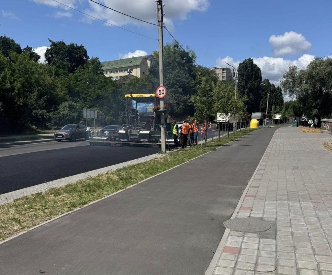 На вулиці Володимира Великого (Гагаріна) триває завершальний етап капітального ремонту — підрядник укладає третій, фінішний шар асфальту.