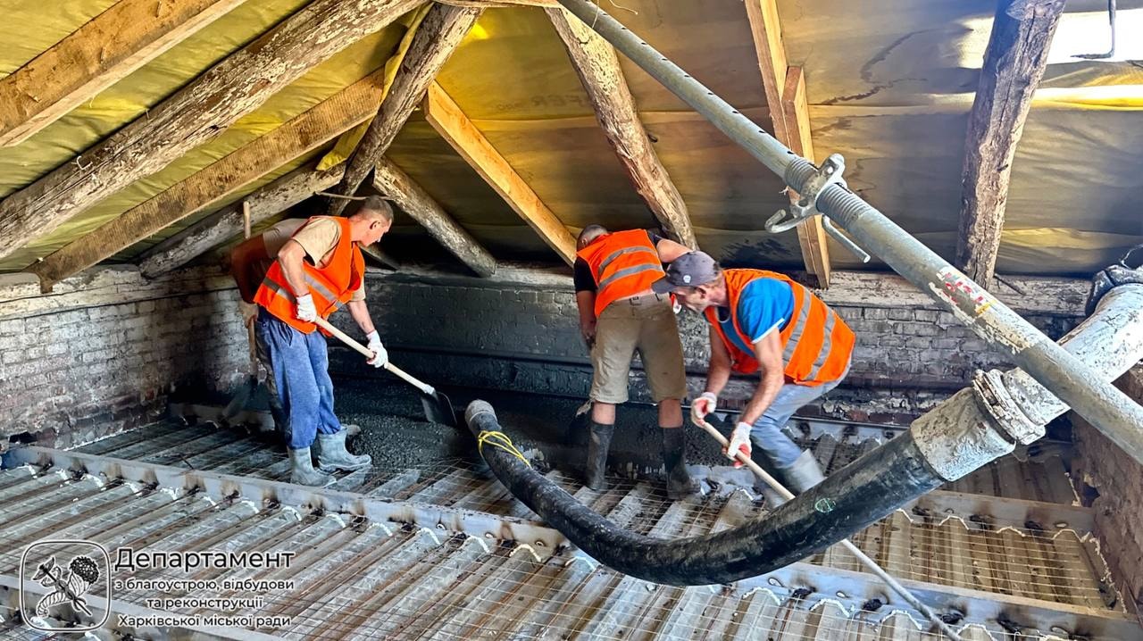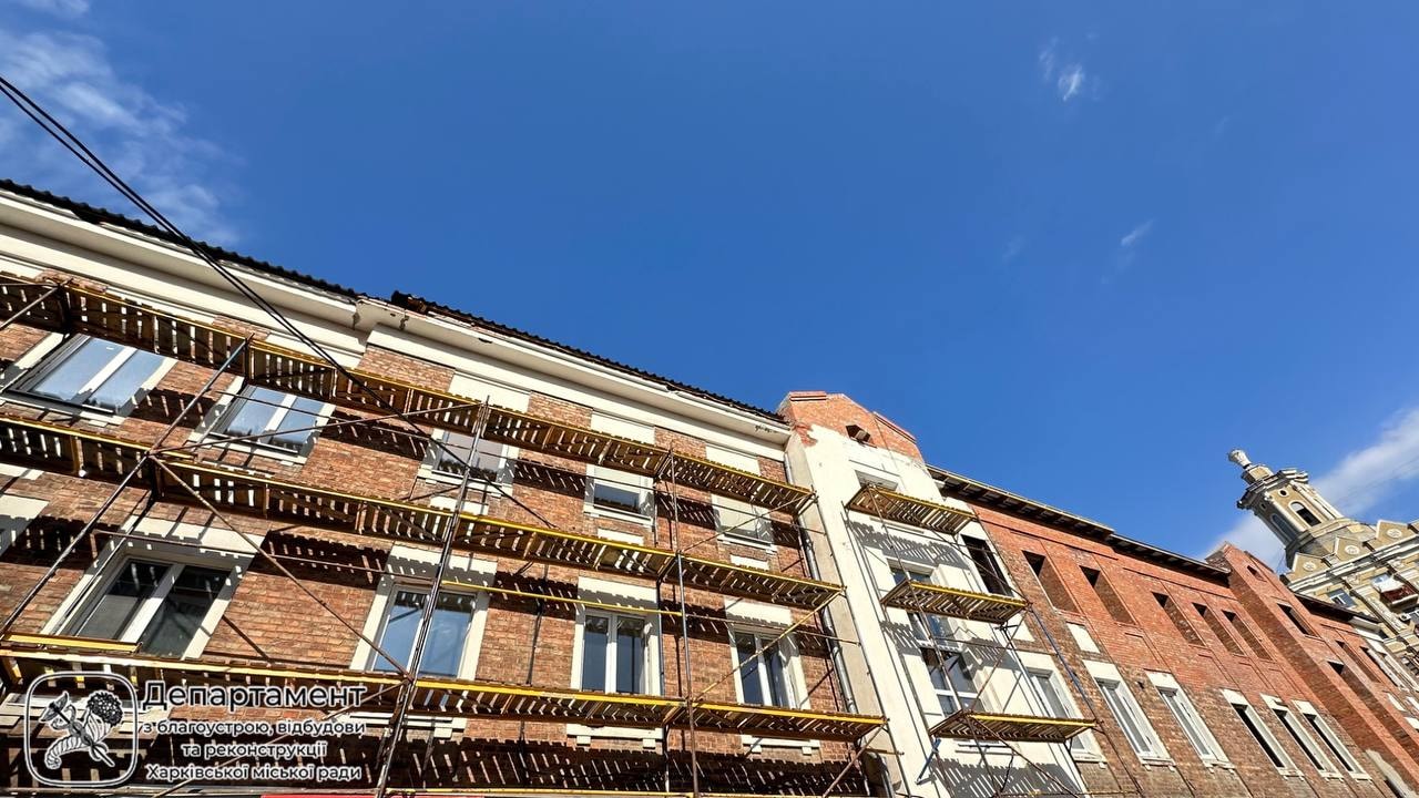 За інформацією Департаменту з благоустрою, відбудови та реконструкції, будівельна команда вже успішно відновила значну частину перекриттів, укріпила несучі стіни та відремонтувала балкони. На даний момент проводяться роботи із заливання плит перекриття для останнього поверху, а також здійснюється монтаж кроквяної системи покрівлі. Загальна площа покрівлі, що потребує ремонту, становить майже 1,2 тисячі квадратних метрів, з яких вже виконано 70% запланованих робіт. Одночасно з цим, будівельники розпочали роботи з відновлення фасаду будівлі, що є важливим кроком до повного повернення будинку до належного стану.