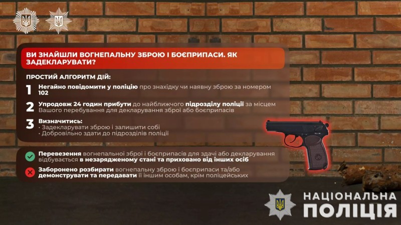 🙎♂️ Якщо ви бажаєте задекларувати знайдену зброю, необхідно: