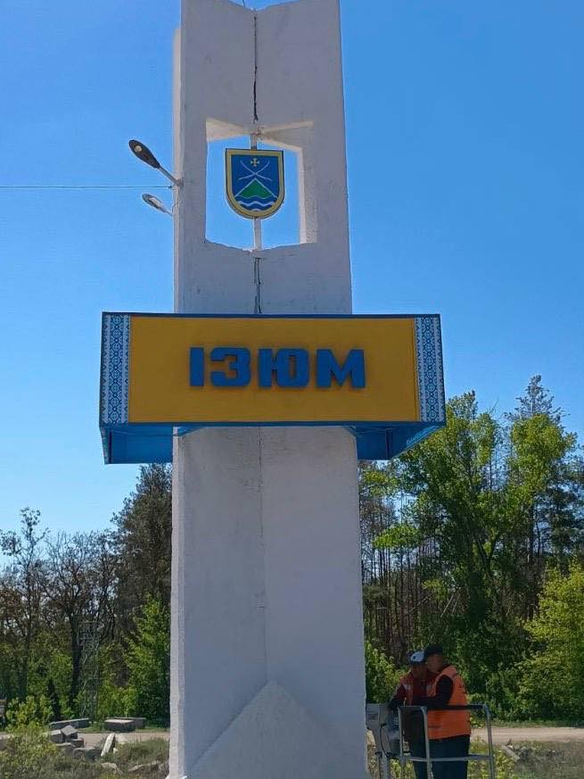 На в’їзді до Ізюма комунальники відновили стели з назвою міста, символи незламності та віри у перемогу. Під час російської окупації ці важливі знаки були знищені, як і багато інших державних символів, ставши свідками трагічних подій. Відновлення стел – це не лише відновлення інфраструктури, але й символ відродження, нагадування про стійкість мешканців та їхню непереможну волю. Роботи з відновлення виконали працівники КП «Благоустрій міста Ізюма», демонструючи відданість громаді та турботу про збереження пам’яті про минуле.