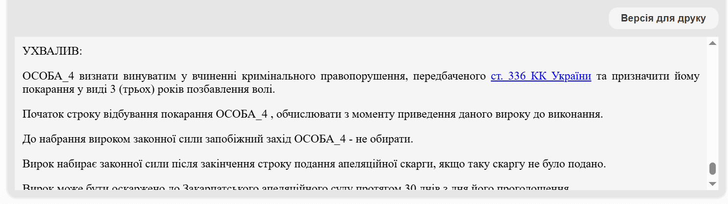 Вирок суду / © Єдиний державний реєстр судових рішень