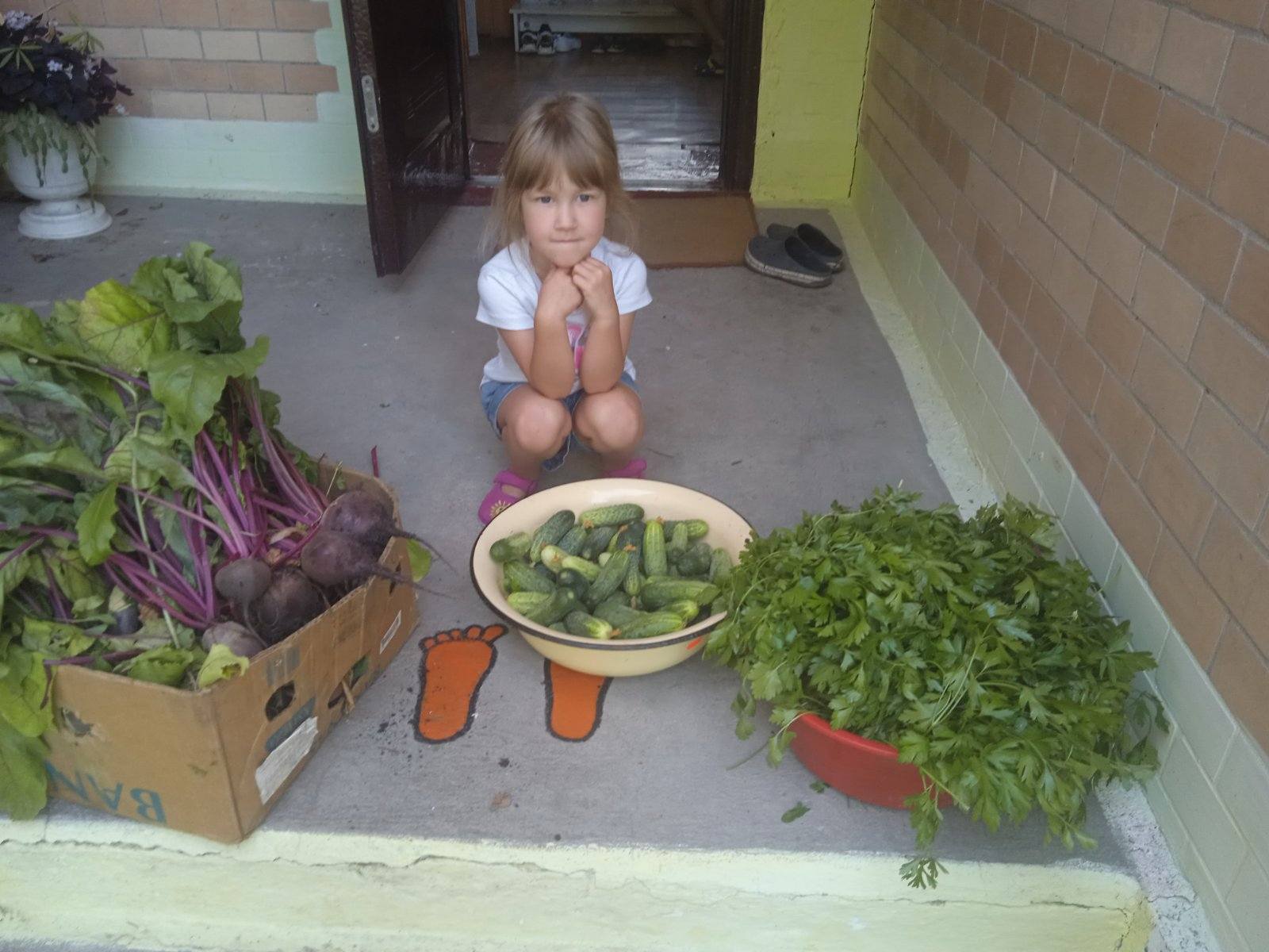🥬🧅🥒У нашій теплиці – не сидиться, бо урожай так і проситься до рук. Тут розрослися огірки, яких тільки встигай збирати молоденькими і хрумкими. Якраз набрали своєї зрілості соковиті буряки і готові йти у борщ. А поряд з ними достигає всяка зелень, з якою страви корисні і смачні.