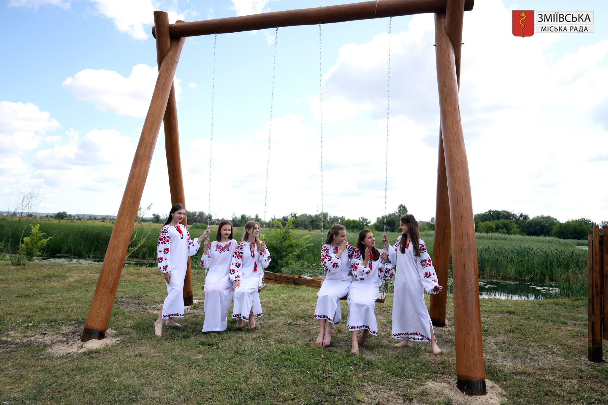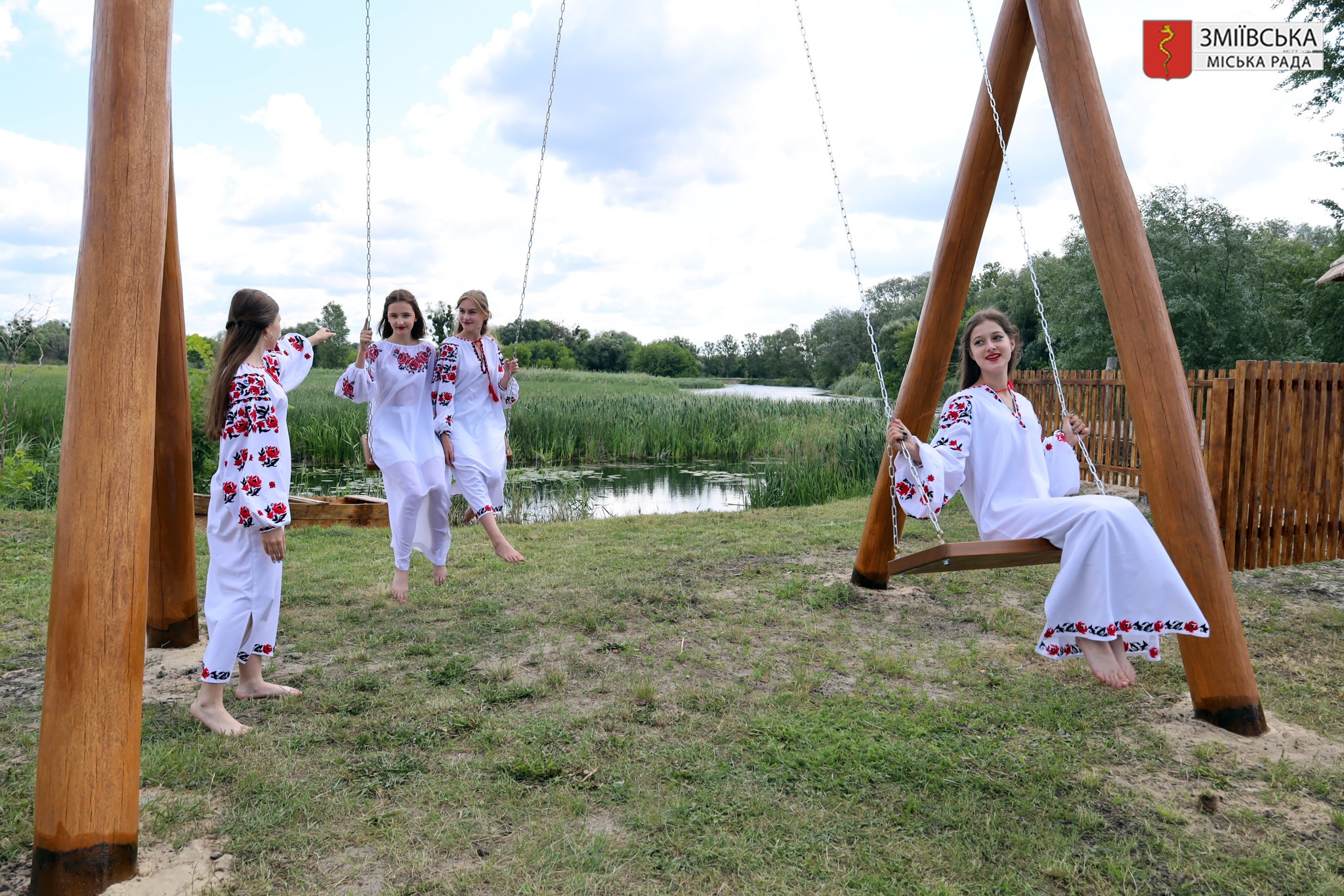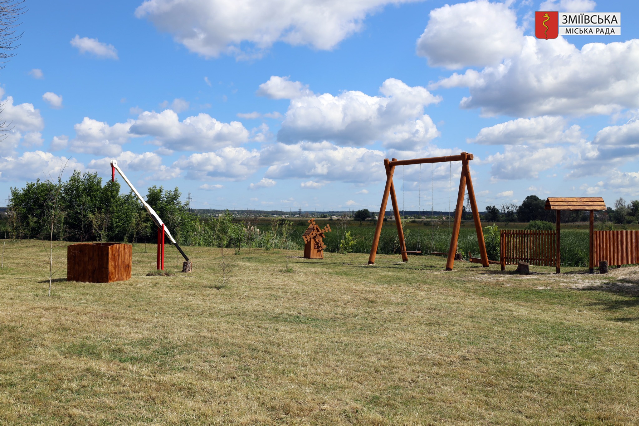 Відсьогодні на території Зміївського міського пляжу відкрилася красива фотозона. Берег річки прикрасили велетенська гойдалка, млин, човник, український тин і колодязь із лелекою. Ця локація створена, щоб дарувати гарні емоції, приємні спогади та яскраві світлини на згадку.