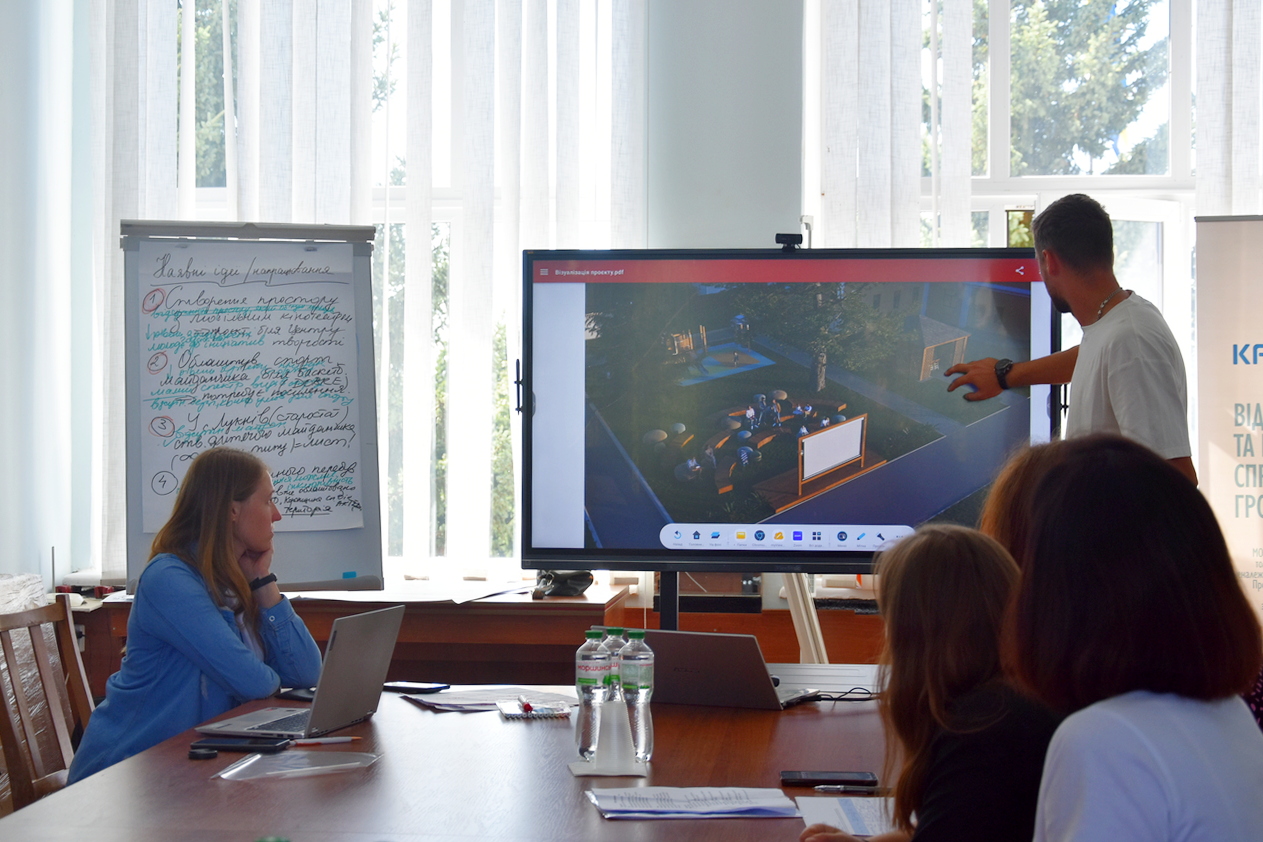 Голова Молодіжної ради Ілля Ваніхін та його заступниця Лілія Висоцька поділилися власним баченням, як виглядатиме майбутній простір, та продемонстрували його візуалізацію.