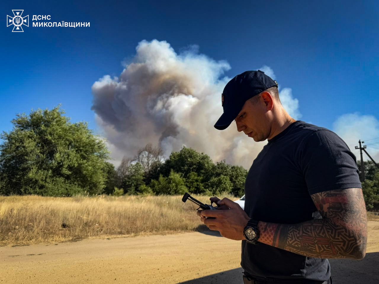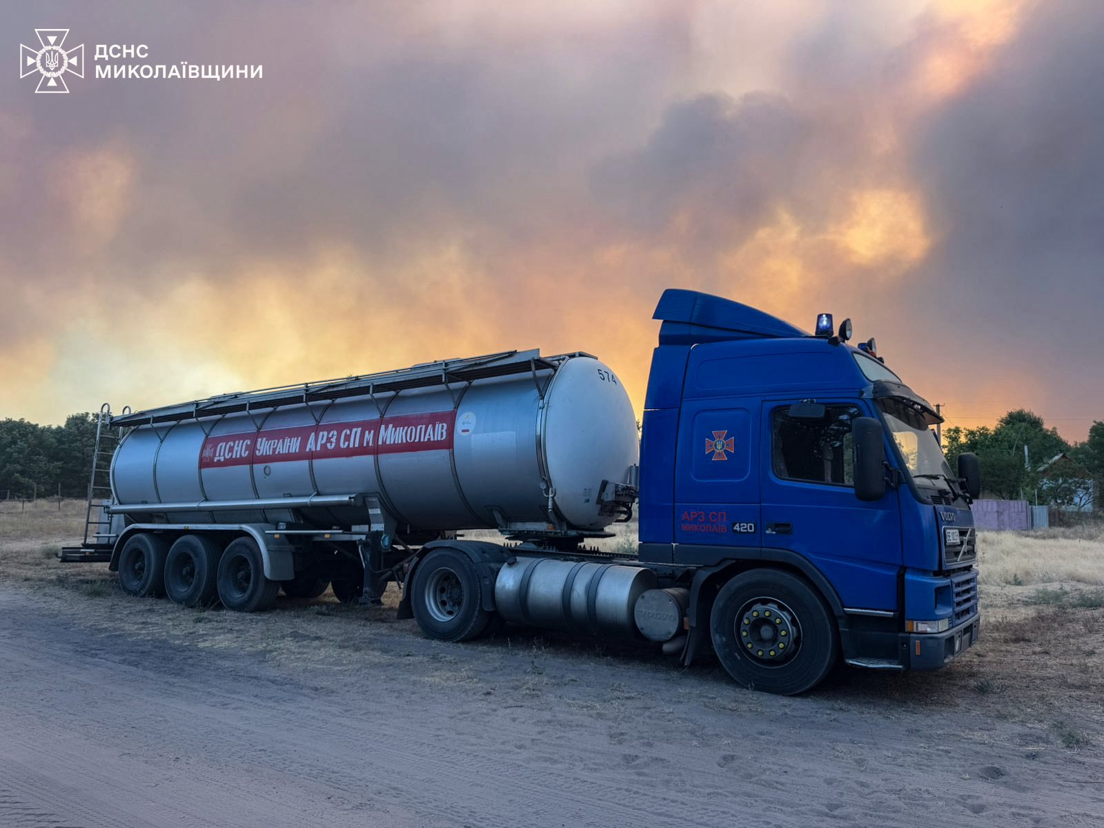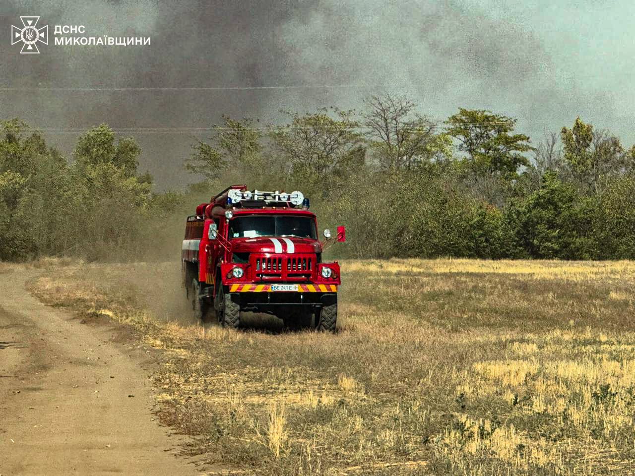 На місці працюють вогнеборці Миколаївщини. Вживаються заходи по локалізації пожежі. Гасіння ускладнюється поривчастим вітром.