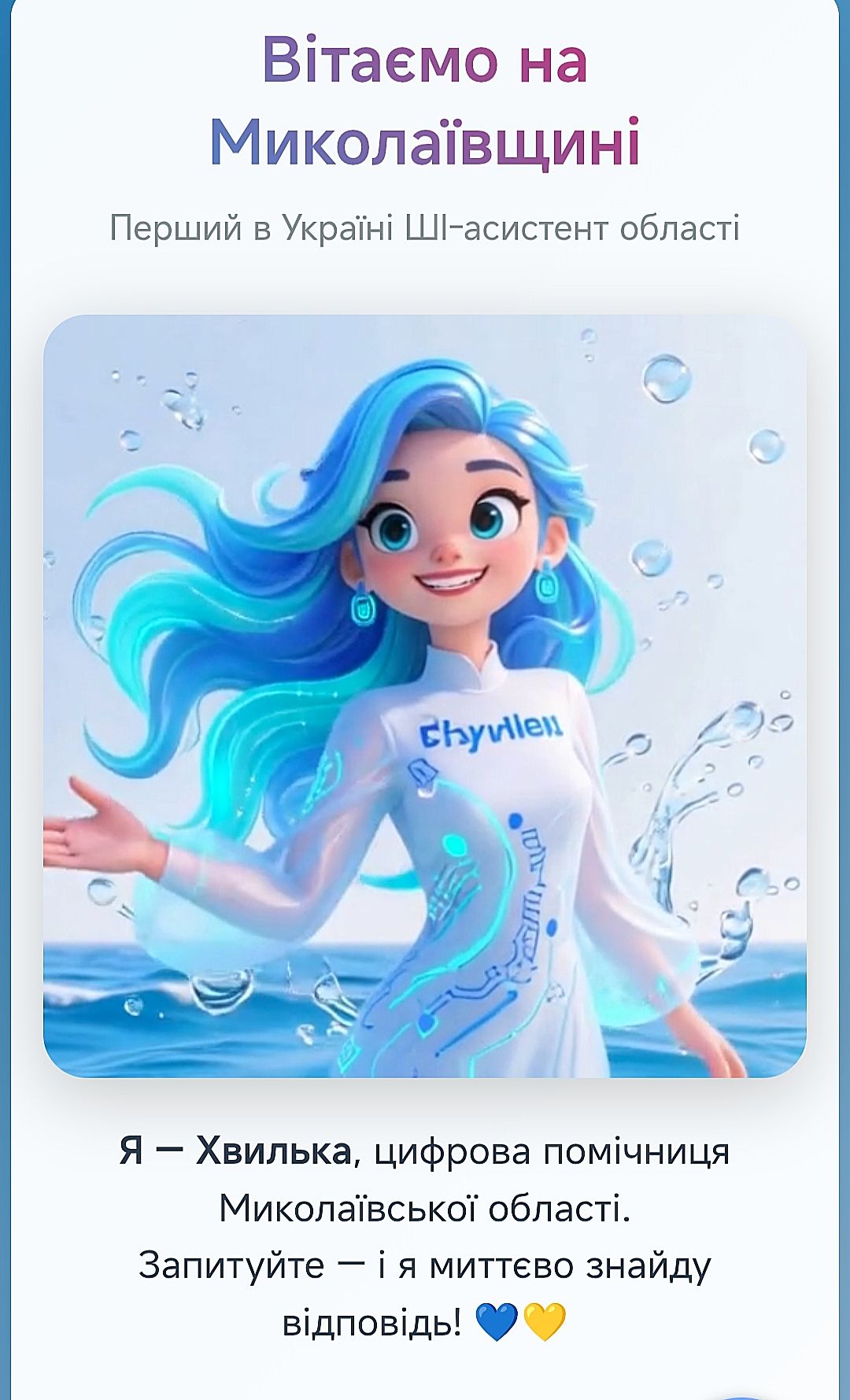 Миколаївська область першою в Україні презентувала власного цифрового консультанта на основі штучного інтелекту — Хвильку.