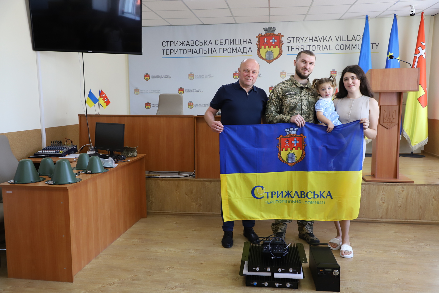 Голова Стрижавської громади Михайло Демченко особисто передав обладнання землякові Михайлу Кочерзі, жителю Стрижавки, старшому лейтенанту, начальнику зв’язку батальйону 120-ої окремої бригади ТрО.