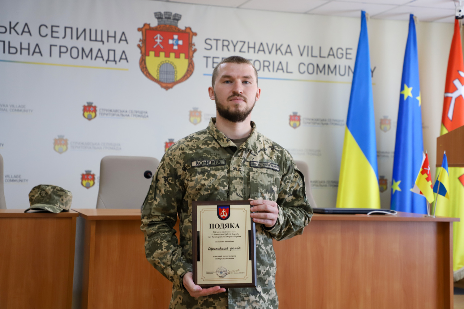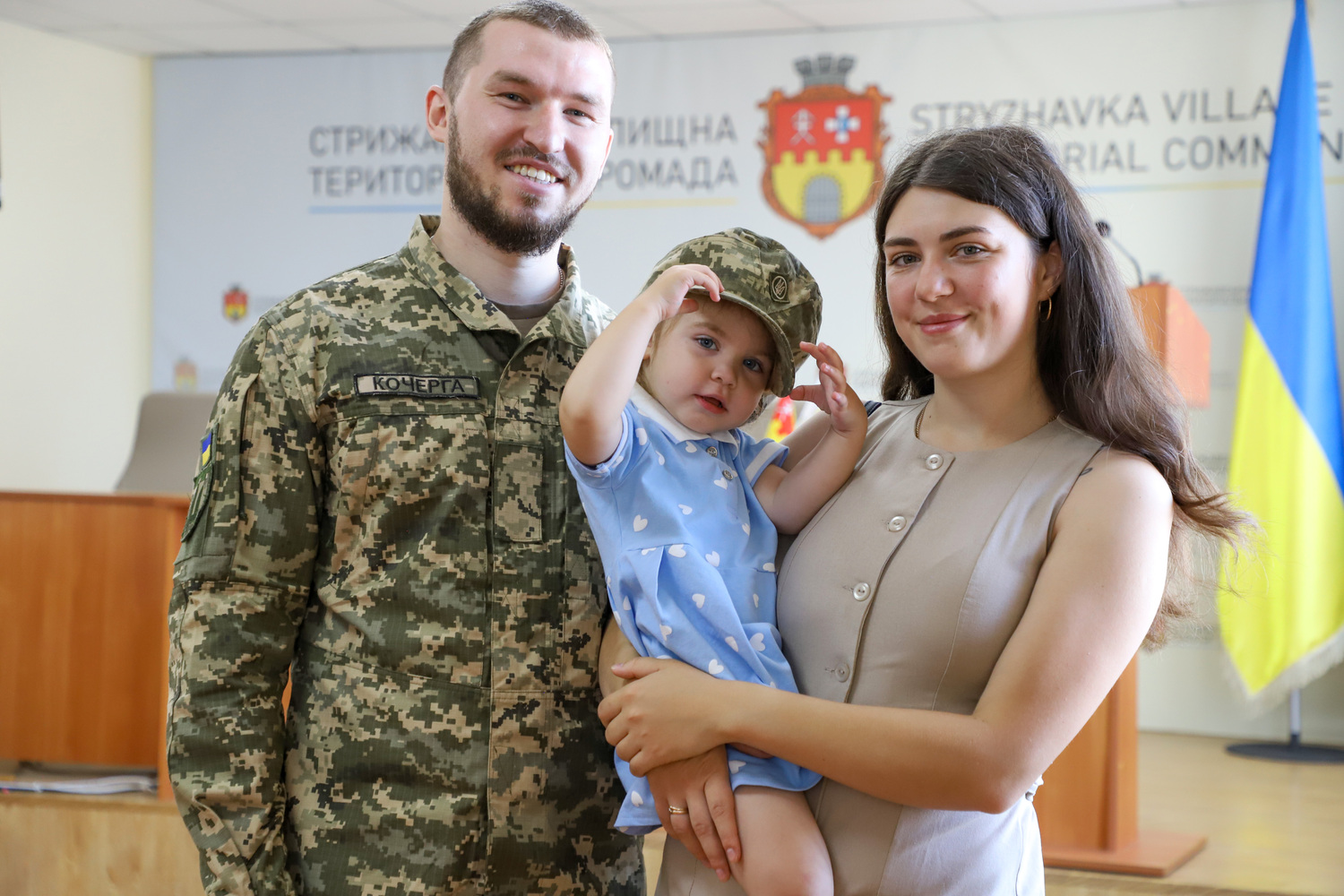 Очільник громади потиснув руку та поспілкувався з Михайлом та його дружиною і маленькою донечкою Богданою. Як зворушливо Богданка обіймала тата — свого справжнього супергероя, який вже за кілька днів вирушає на фронт. Щоб підняти татові настрій, дівчинка під час вручення одягла татову військову кепку, яка була їй завелика, і подарувала усім свою щиру усмішку.