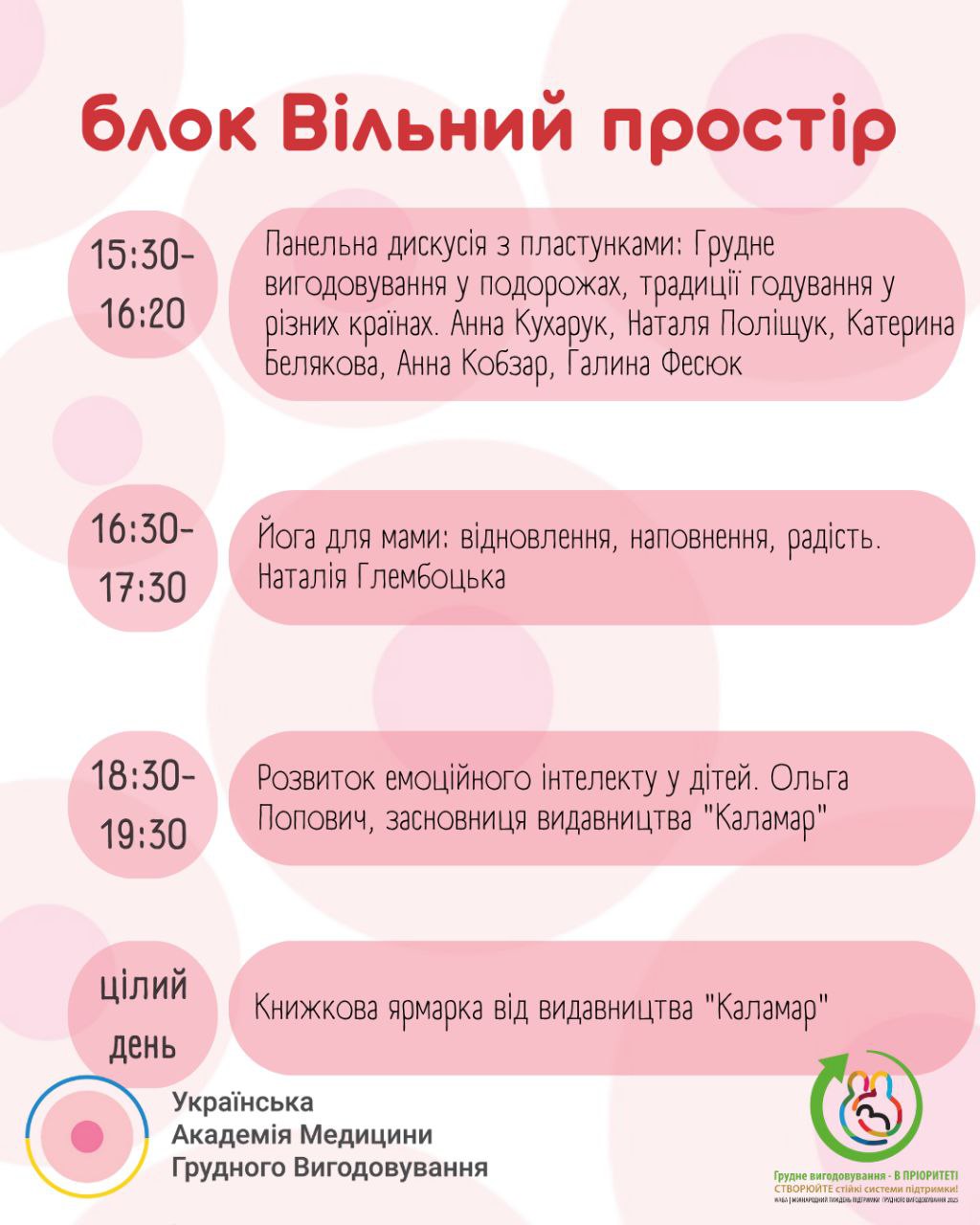 У програмі заходу на вас чекають не лише інформативні лекції від провідних фахівців, але й практичні майстер-класи, де ви зможете отримати відповіді на нагальні питання та відпрацювати необхідні навички. Окрім того, передбачені індивідуальні консультації з експертами з грудного вигодовування, а також приємні подарунки для учасниць. Це чудова можливість поглибити свої знання та отримати цінну підтримку на шляху до успішного грудного вигодовування.