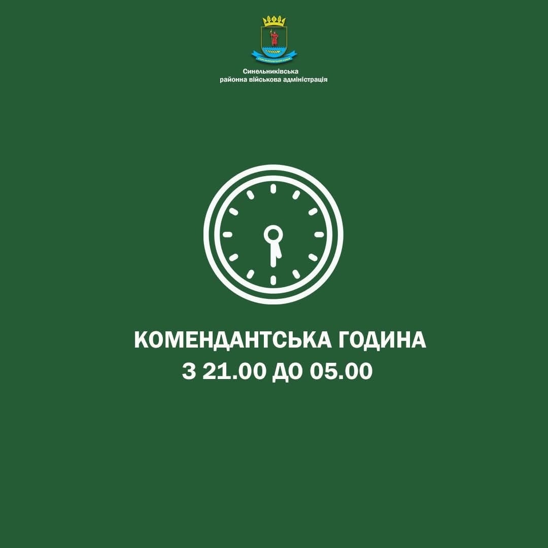 З 11 серпня 2025 року на території Синельниківського району комендантська година триватиме з 21:00 до 05:00. Відповідне розпорядження № Р-25/0/542-25 підписав начальник районної військової адміністрації.