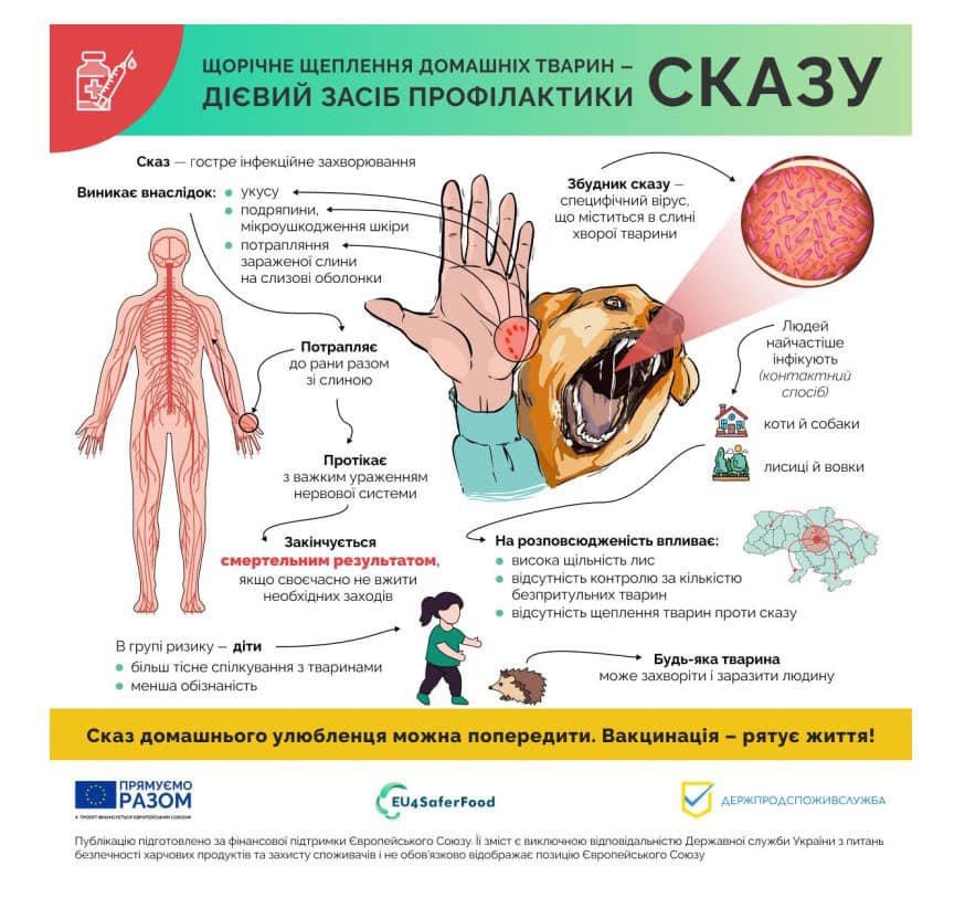 Сказ – це надзвичайно небезпечне інфекційне захворювання, яке вражає як тварин, так і людей. На сьогодні, вакцинація є найбільш ефективним способом захисту від цієї хвороби. Сказ невиліковний, тому профілактика – єдиний надійний спосіб уберегтися.
