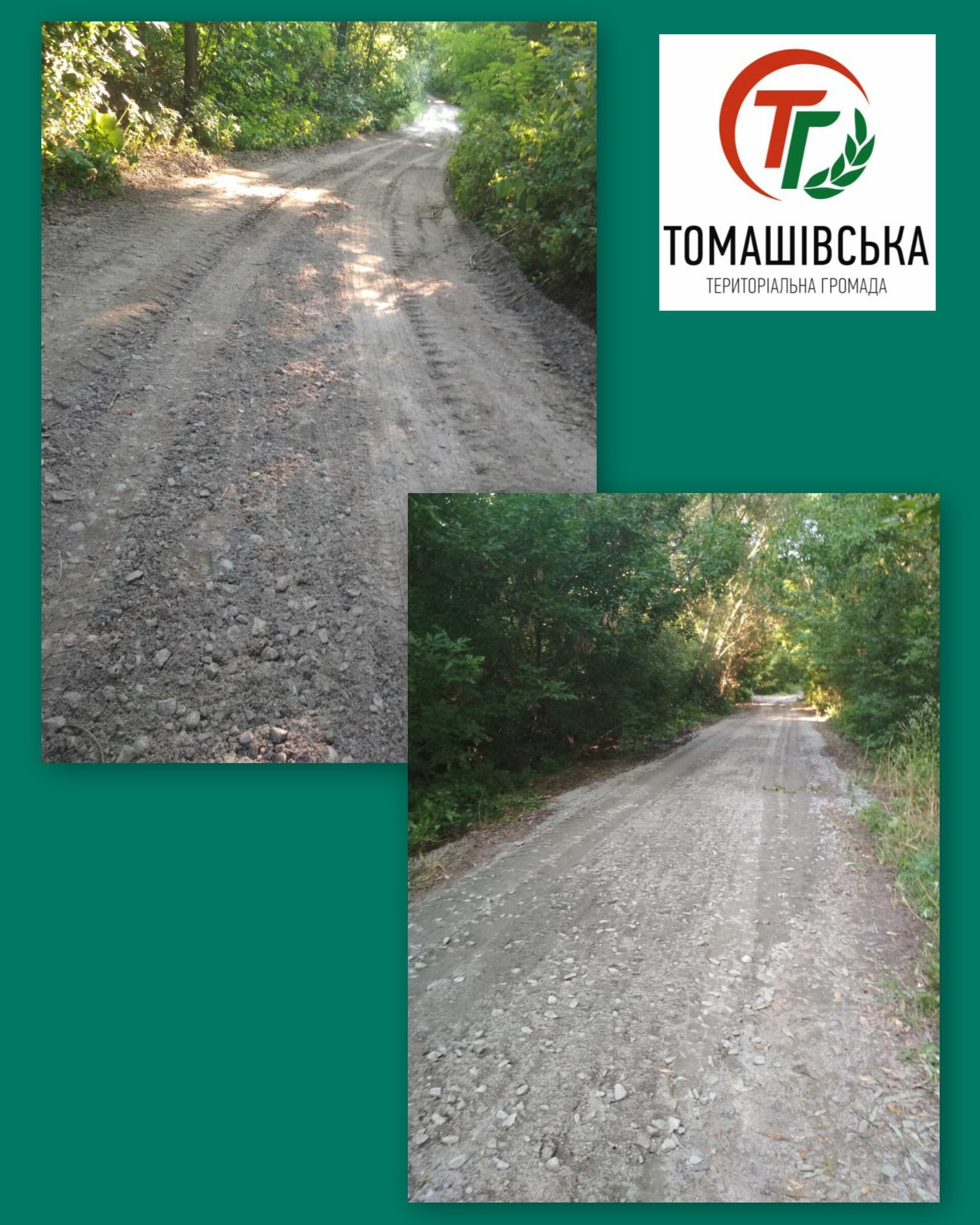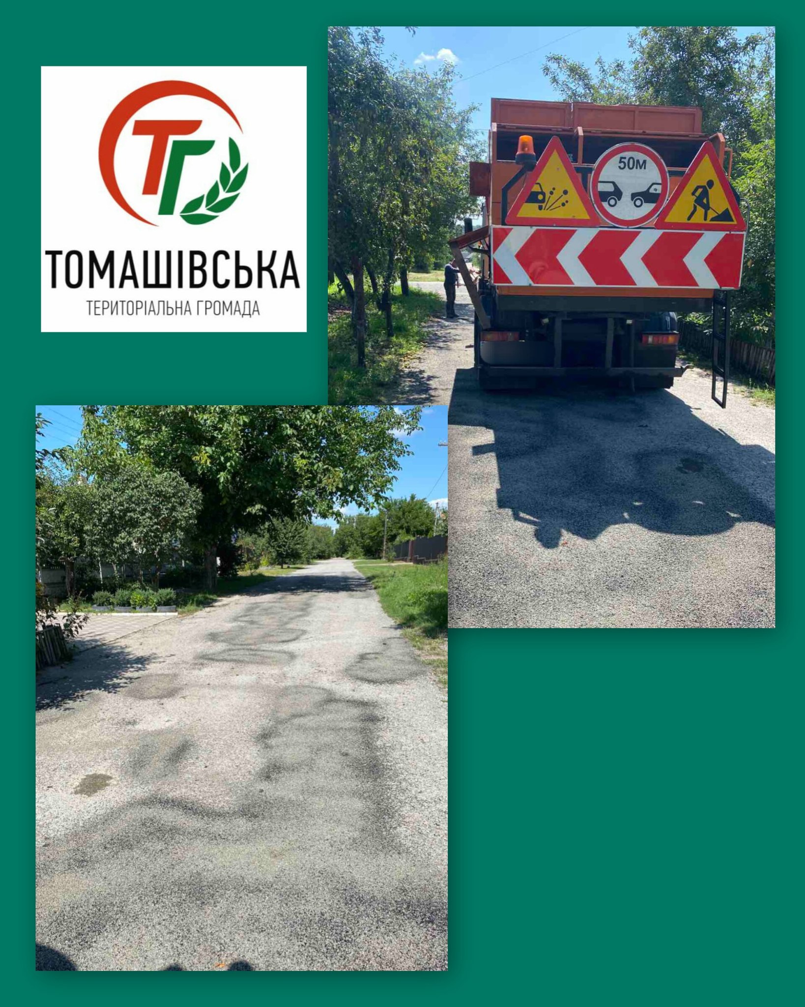 🚧 На території Томашівської громади продовжуються роботи з проведення ремонту ділянок автомобільних доріг.