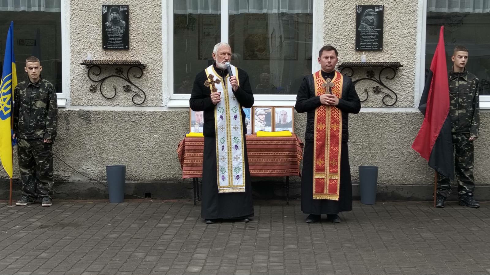 Церемонія розпочалася з панахиди, яку провели Отці Іван САБАДАШ та Юрій КАЛИН. У спільній молитві родини, представники місцевої влади, громада, бойові побратими та учні ліцею просили Господа за спокій душ полеглих Героїв. Після панахиди священники освятили пам’ятні знаки. Цей духовний обряд надав їм статусу не просто пам’ятних таблиць, а справжньої святині, місця, де житиме дух незламності та самопожертви українського народу.