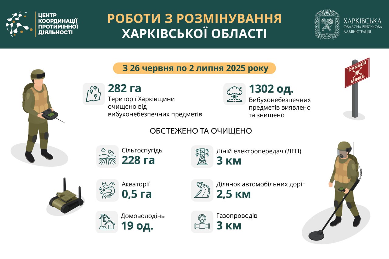 Розмінування Харківщини: понад 1300 ВНП знешкоджено за тиждень